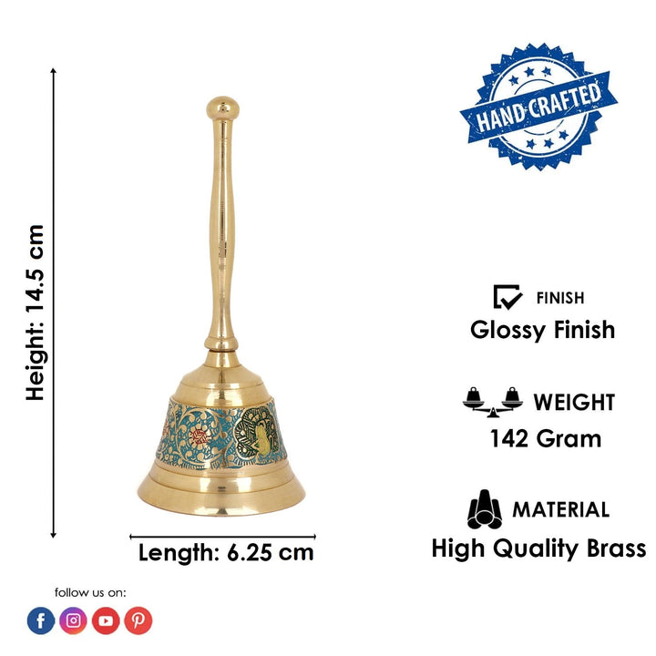 • Description: Ringing bells are like a message to the whole world of a new day that starts with a visit to the temple/God making the start of the day- the best one. It is often called as Pooja bell or Ghanti. Handheld bells are held in the left hand and rung continuously while the various other Puja items are offered to God with the right hand. It is considered that the ringing bells ward off an evil spirit and is pleasant to God. Brass Pooja Bell is perfect to your home temple/aarti session and will have everyone mesmerized. The charming sound of this brass hand bell will reach out your prayers to the God and fill the atmosphere with divine sound and live music to the aarti during any Pooja/ceremony and also remove negative energy from your house/ office. Bring a shiny and beautifully crafted auspicious Pooja Bell Made up of Brass Material, Can Be Used for Worship At Home/Temple/Office, also an ideal gift for your loved one.