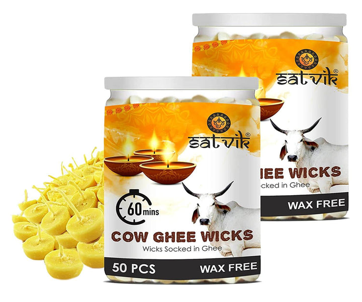 Buy 100% Wax Free-Pure Cow Ghee Wicks for Pooja | Satvikworld.com