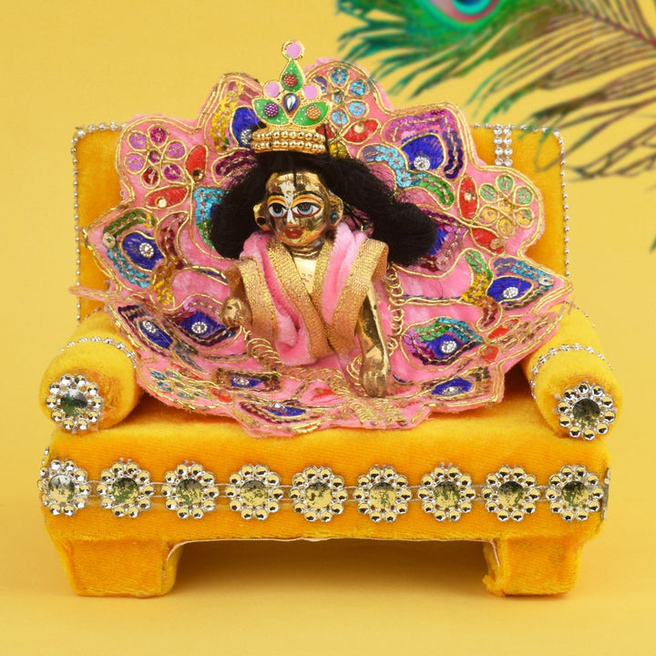 • Item Name: Pretty Yellow Laddu Gopal's Divine Velvet Singhasan
