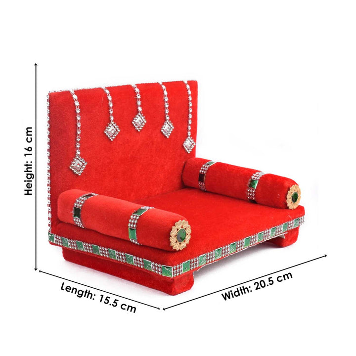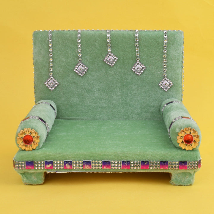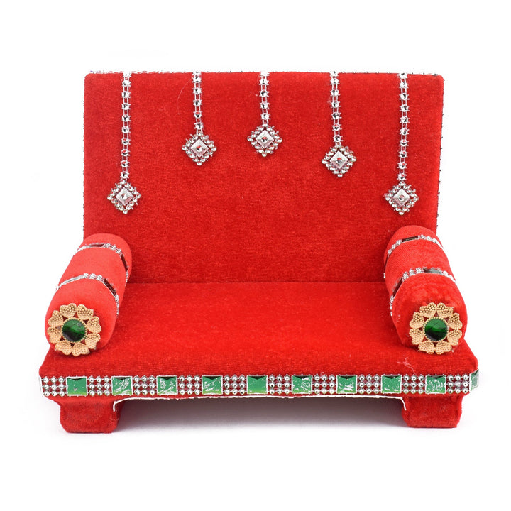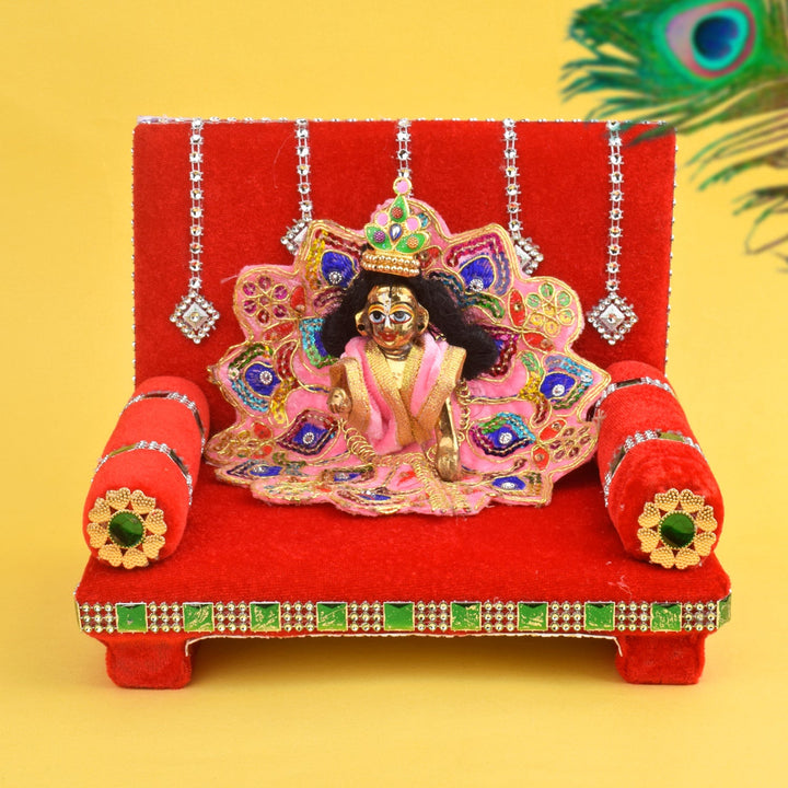 velvet singhasan for laddu gopal | krishna velvet throne | velvet deity singhasan | red velvet pooja singhasan | green kanha ji throne | pink laddu gopal singhasan | large velvet throne for deity | traditional krishna singhasan | pooja room accessories | mandir seat for laddu gopal | handmade velvet pooja furniture