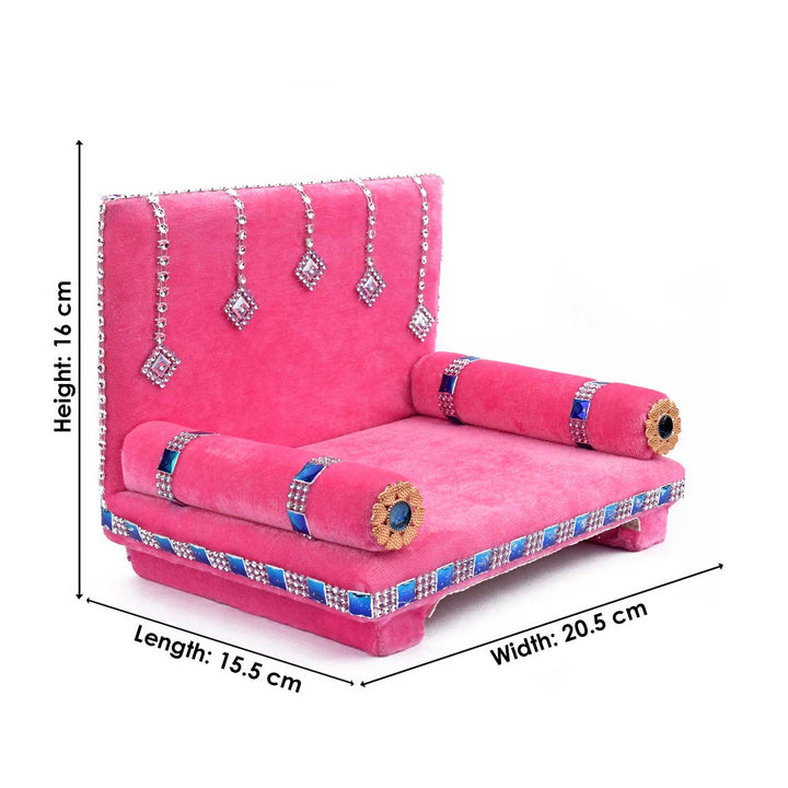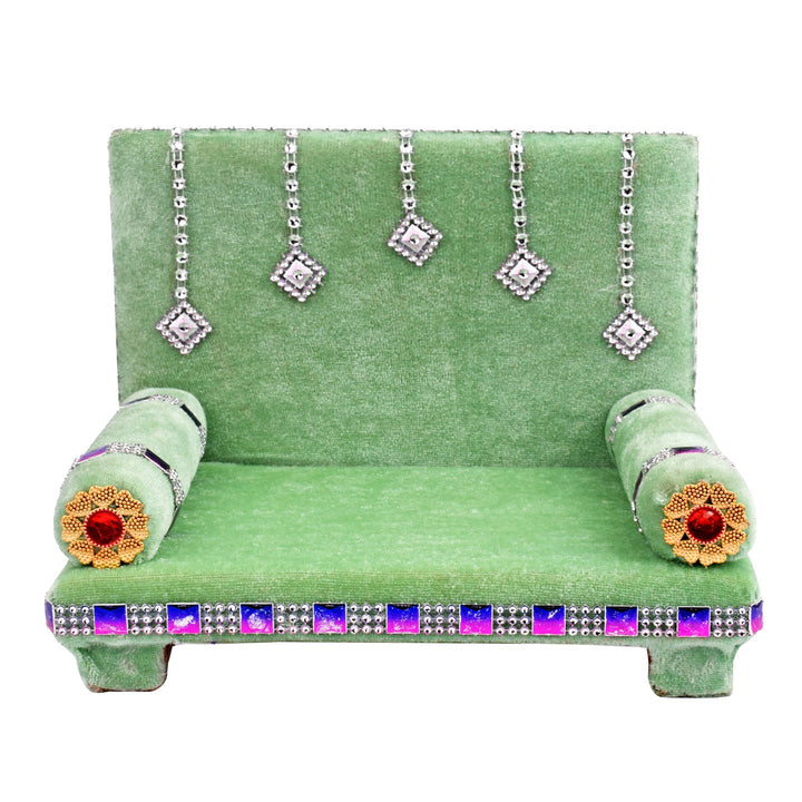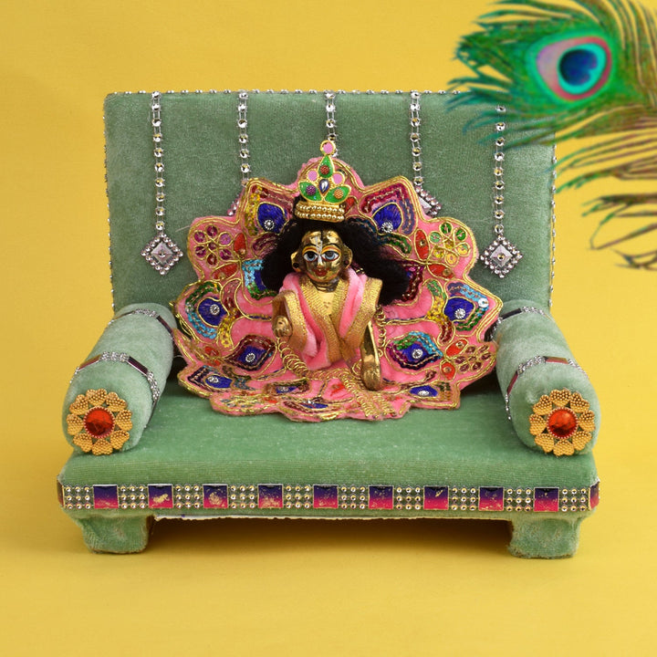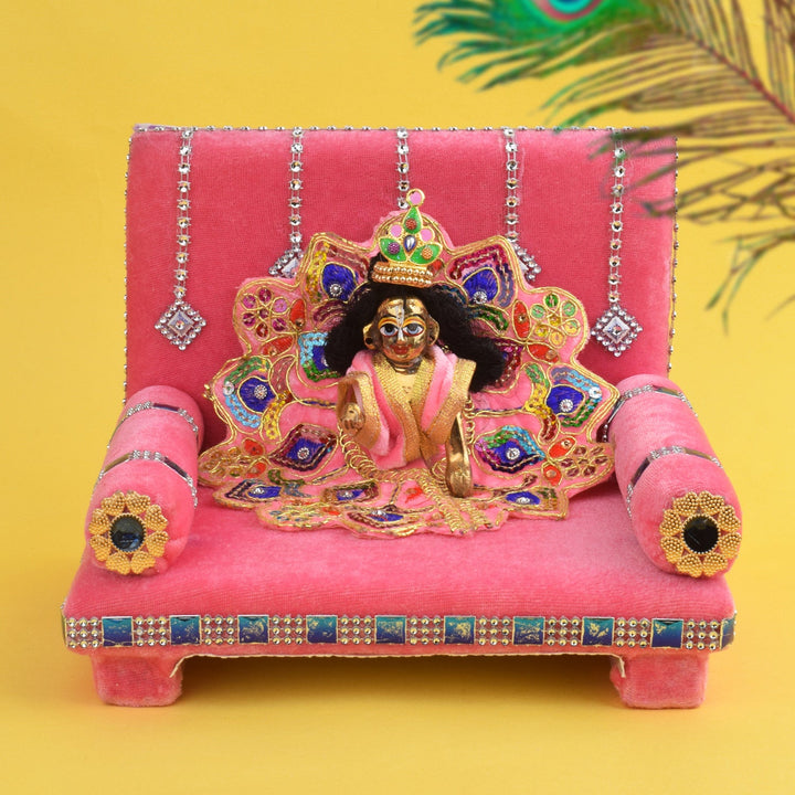 As you place your Laddu Gopal on this sacred throne, watch as the velvet embraces the little lord, showering blessings and grace upon your home. Its charming allure and captivating design make it a true centerpiece of devotion, adding a touch of splendor to your worship space.