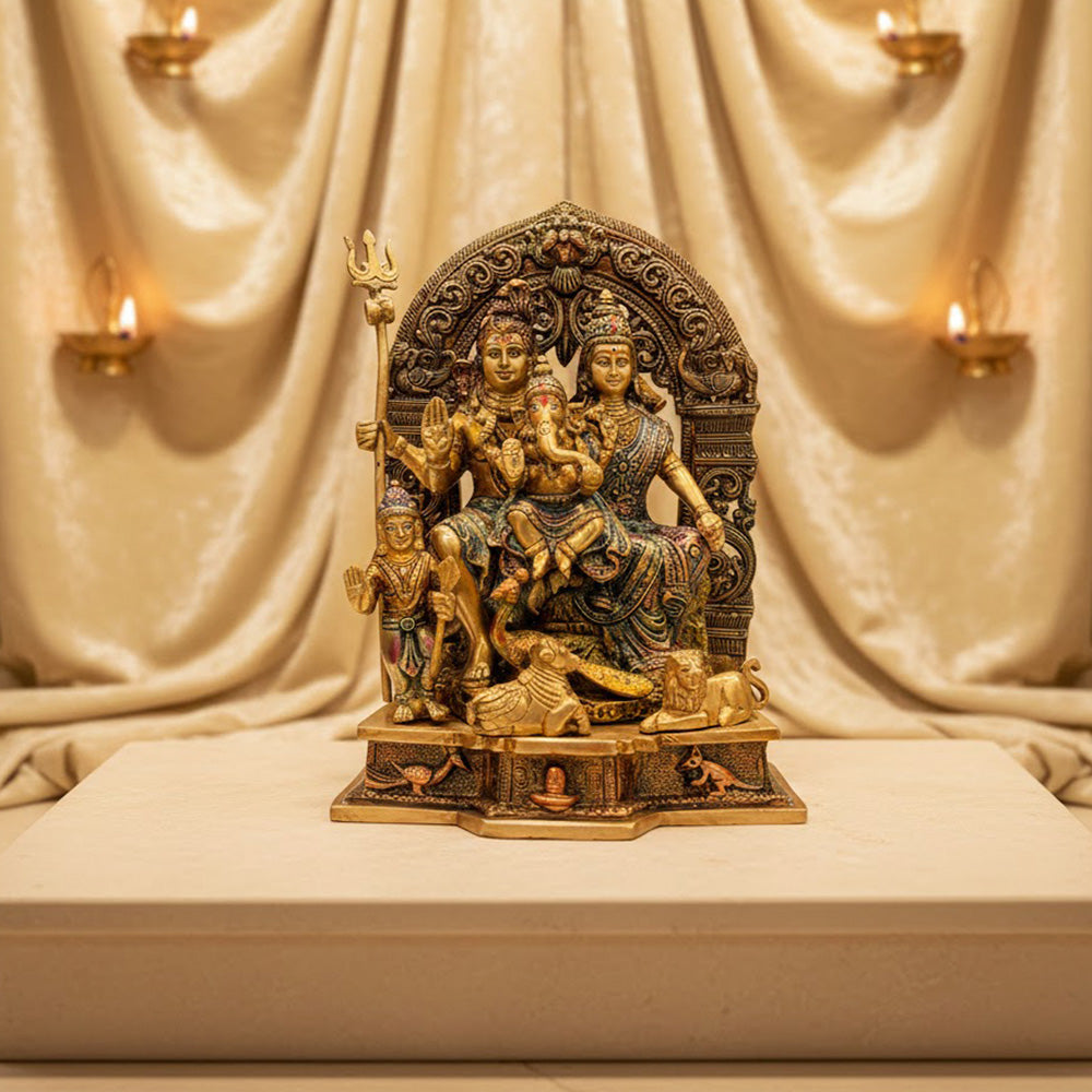 11.8 Inch Handcrafted Brass Shiv Parivaar Statue