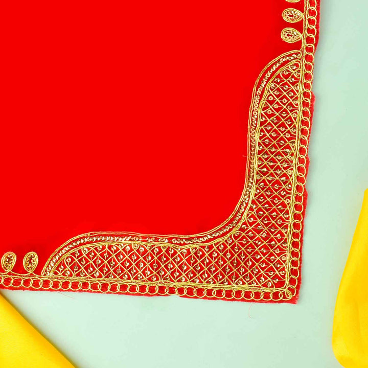 About Product: The Designer Aasan (16x24 inches) set includes 4 finely crafted velvet mats designed for pooja, rituals, and mandir decoration. Each mat features high-quality velvet fabric with Golden Lace all over the Border, offering a vibrant and sacred appeal. These aasans are perfect for placing idols, pooja thalis, or kalash during religious ceremonies, and are suitable for all kinds of auspicious occasions. Ideal for everyday spiritual use and festive decor, this pack adds both divinity and elegance to your space.