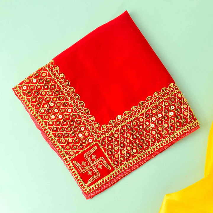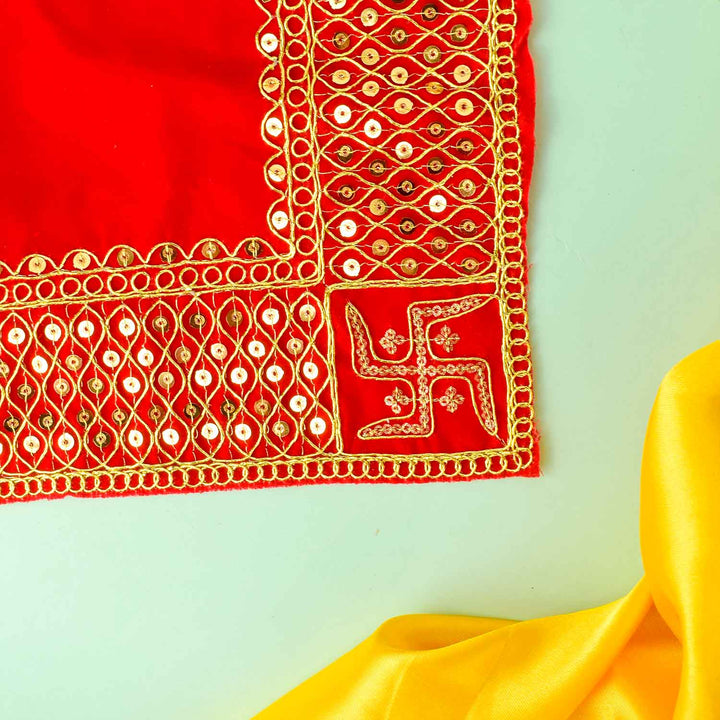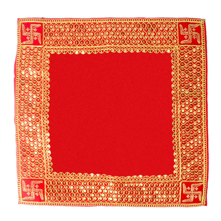 Size and Craftsmanship: 16 x 16 Inch Size, Made from High-Quality Velvet with Swastik Design and Golden Lace all over the Border