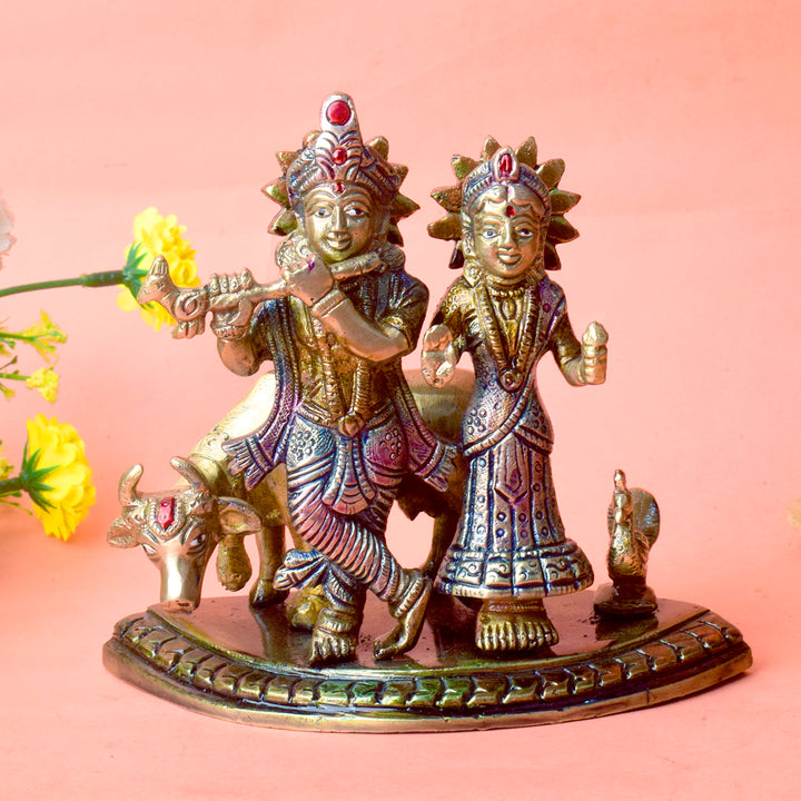 5.5 Inch Divine Radha Krishna with Kamdhenu Cow Idol