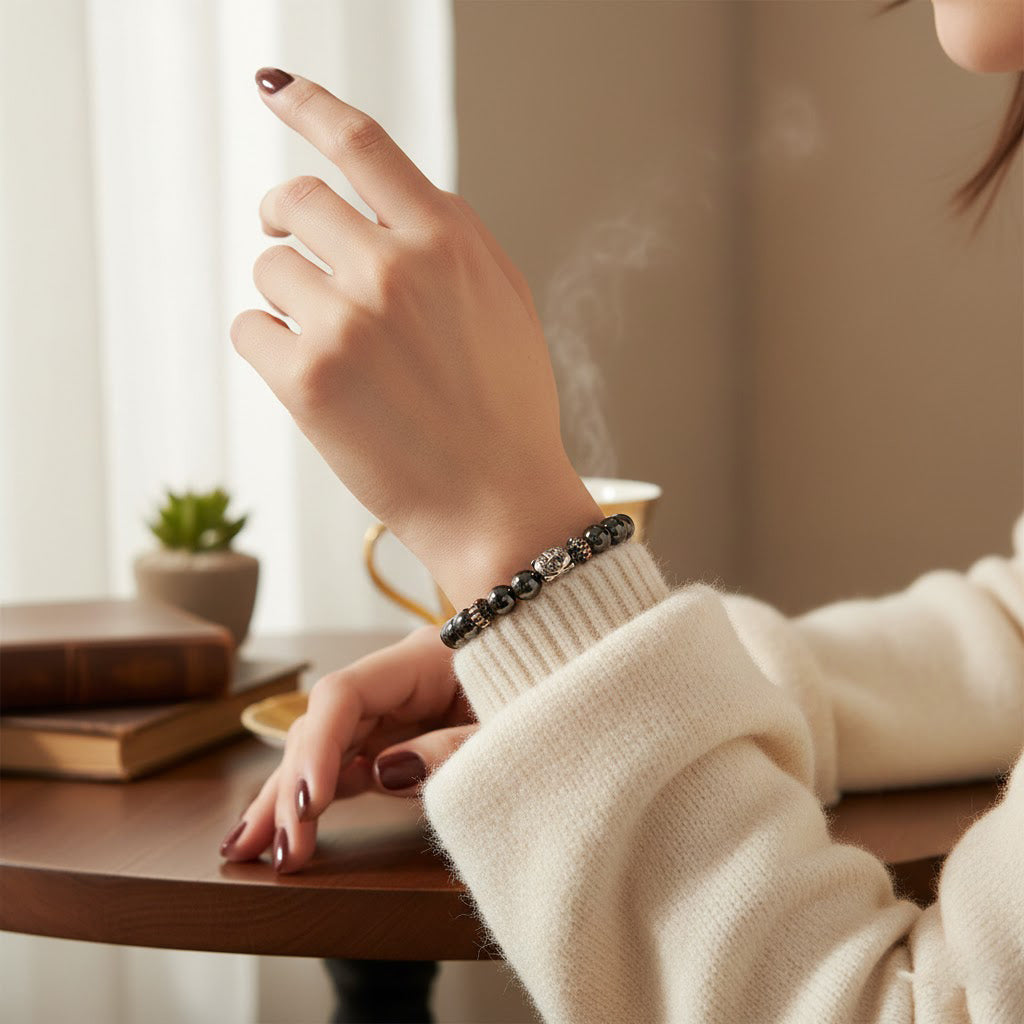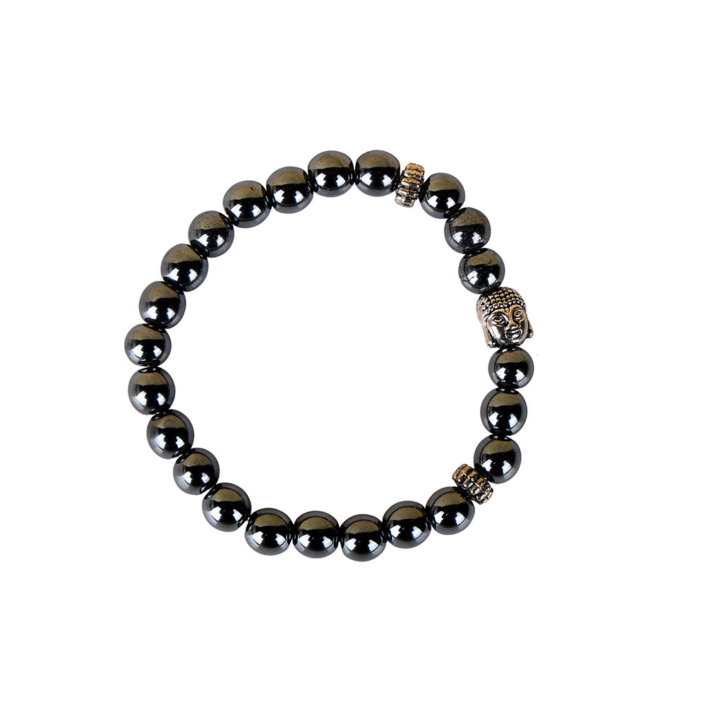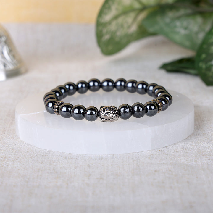Hematite is widely known as a grounding and protective stone that helps absorb negative energy, improve focus, and strengthen emotional stability. The Buddha charm symbolizes mindfulness, wisdom, and inner awakening, making this bracelet ideal for meditation, healing practices, and daily wear.