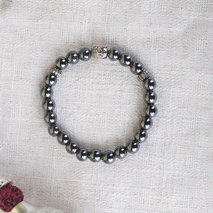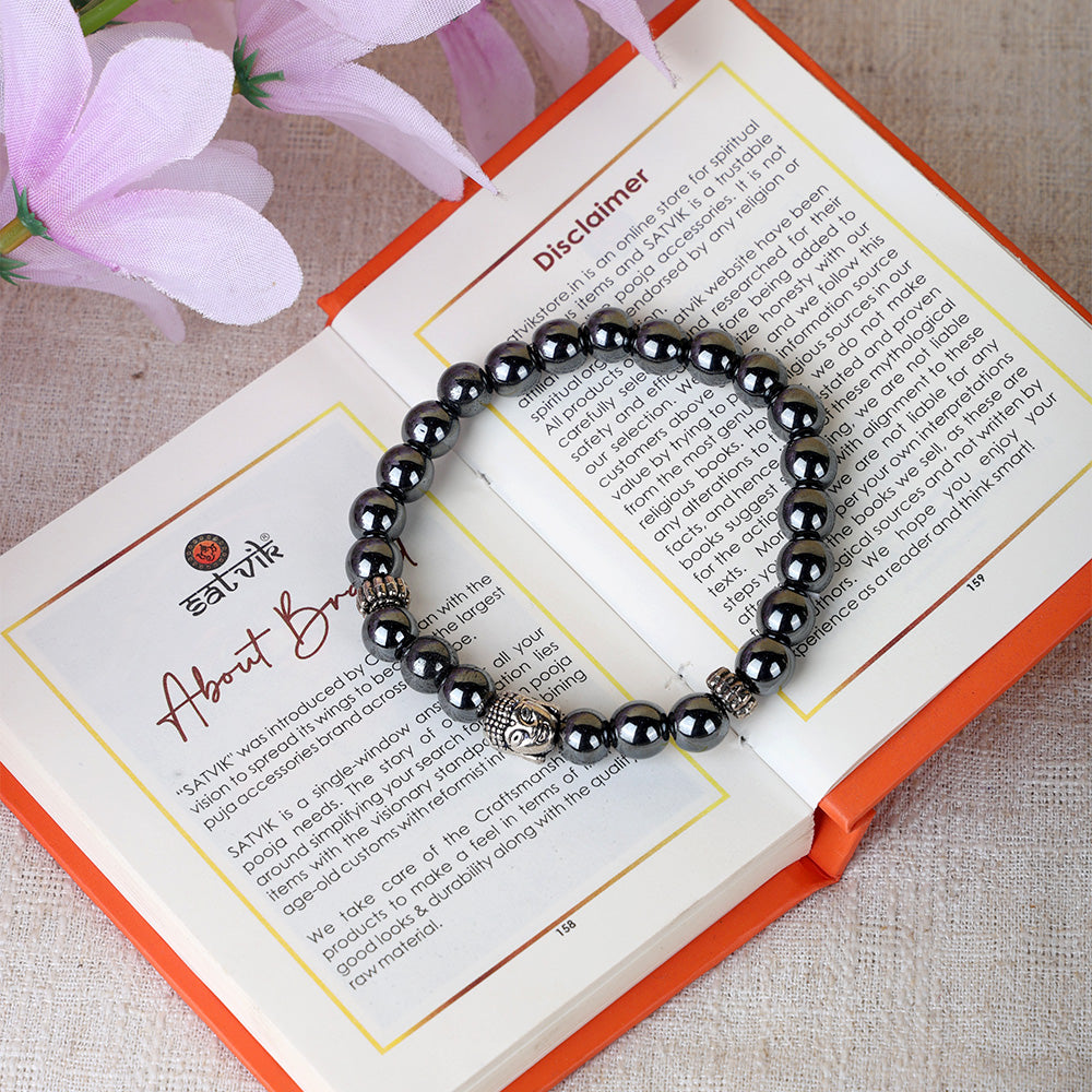 Buy Hematite Bracelet with Silver Buddha Charm | Satvikworld.com