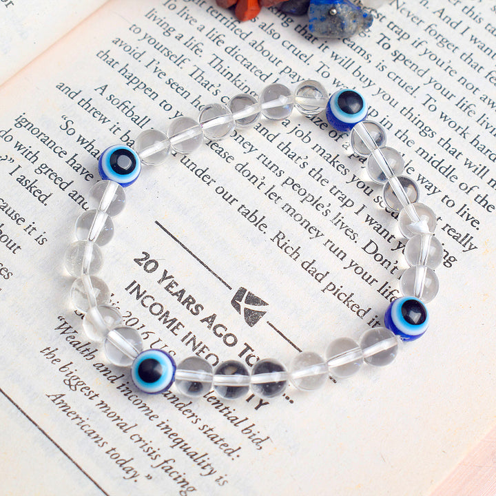 Pure Radiance: Authentic Clear Quartz Bracelet with Evil Eye 8MM – Satvikworld.com