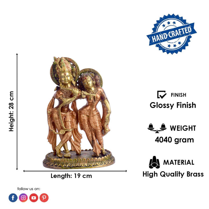 About Product: Radha Krishna are the embodiments of love, divine joy, and harmony, symbolizing the union of the soul with the divine. According to shastras, Radha Krishna are revered as the most graceful and divine beings, attracting love and devotion from all who come in contact with them. This beautiful divine Radha Krishna Statue is crafted from high-quality brass. A symbol of love, devotion, and bliss, the Radha Krishna idol is perfect for pooja ceremonies or for adding a spiritual touch to your home decor. The Radha Krishna statue is also considered a joyous figure, bringing peace, love, and happiness to any space it adorns.