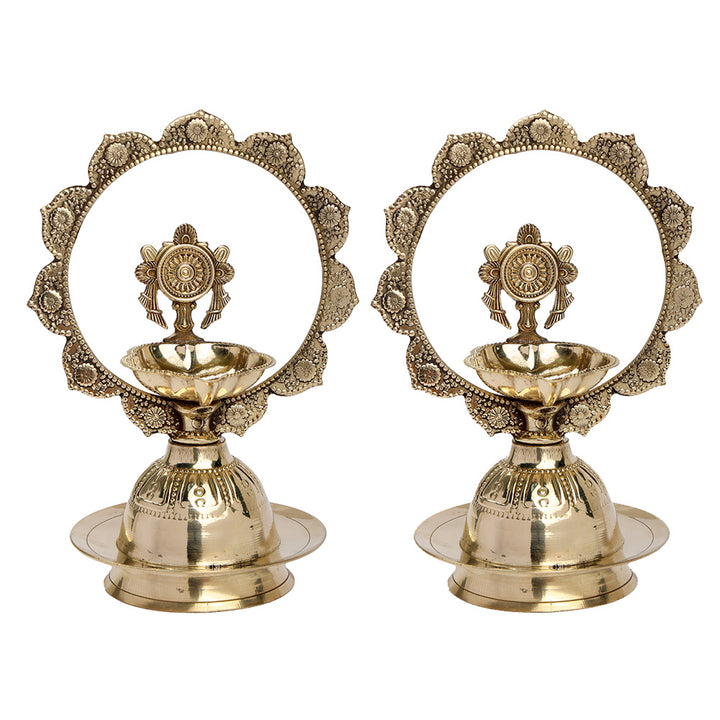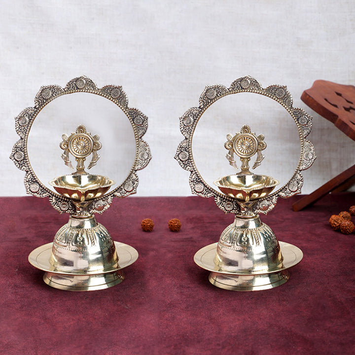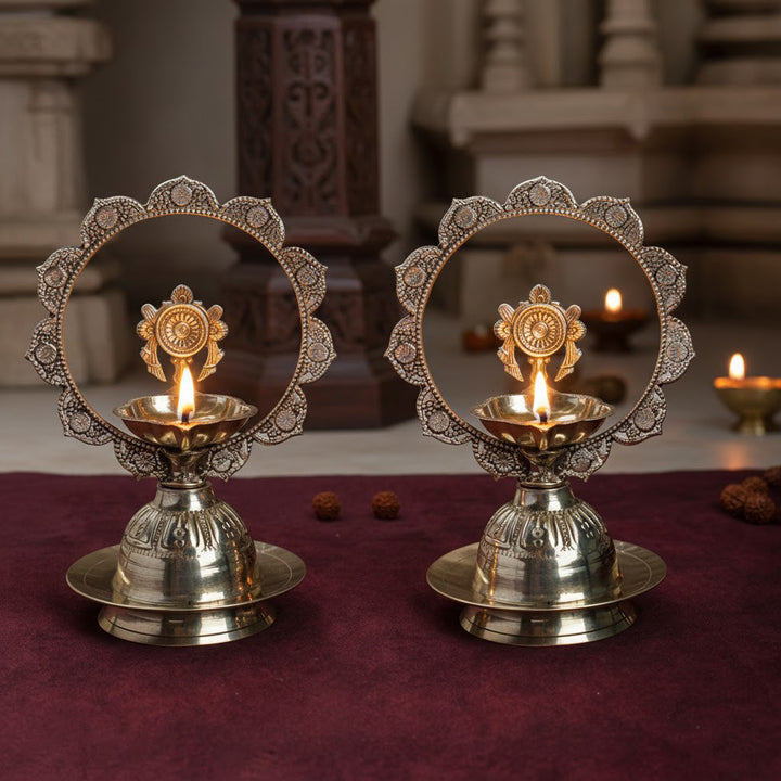 Buy Brass Mor Kiran Chakra Diya & Shankh Diya Pair | Satvikworld.com