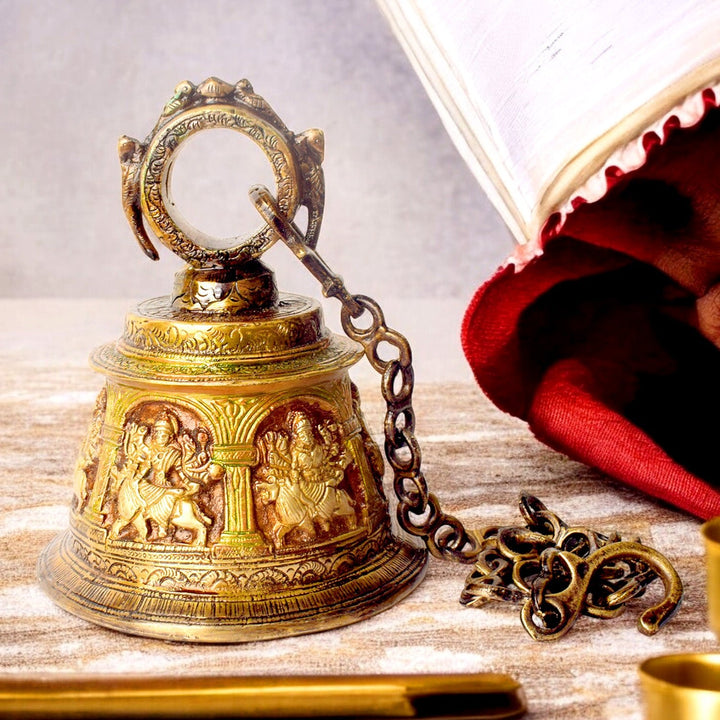 Buy Brass Temple Bell with Embossed Sherawali Maa | Satvikworld.com