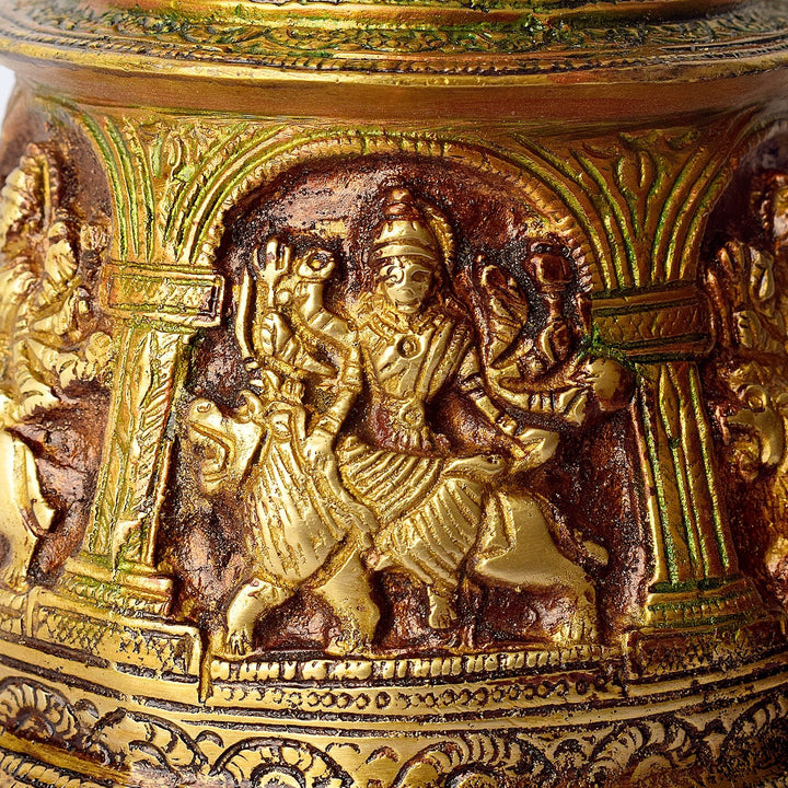 • Item Name: Brass Temple Bell (Ghanta) with Intricate Sherawali Mata Design