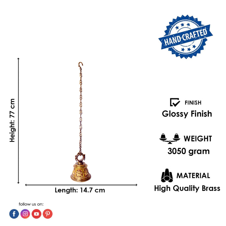 Perfect for religious rituals, meditative practices, or as a decorative addition to your altar, this bell embodies prosperity, wisdom, and spiritual harmony. The exquisite embossing of Lord Ganesh enhances its spiritual significance, transforming it into both a devotional item and a piece of art.