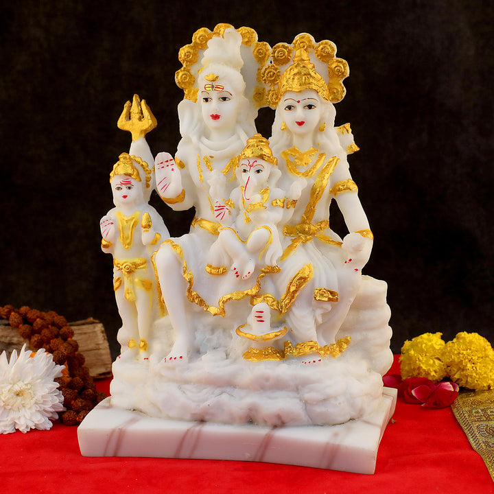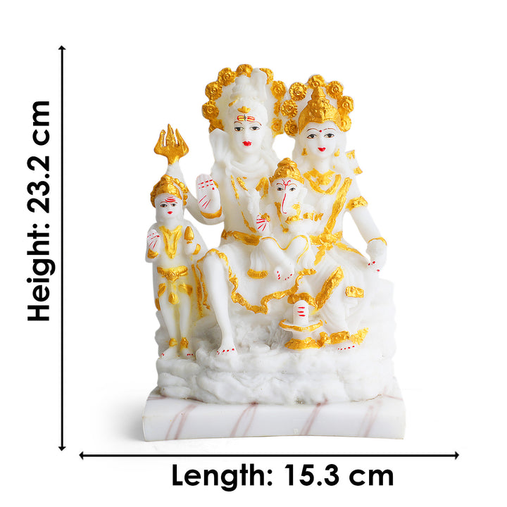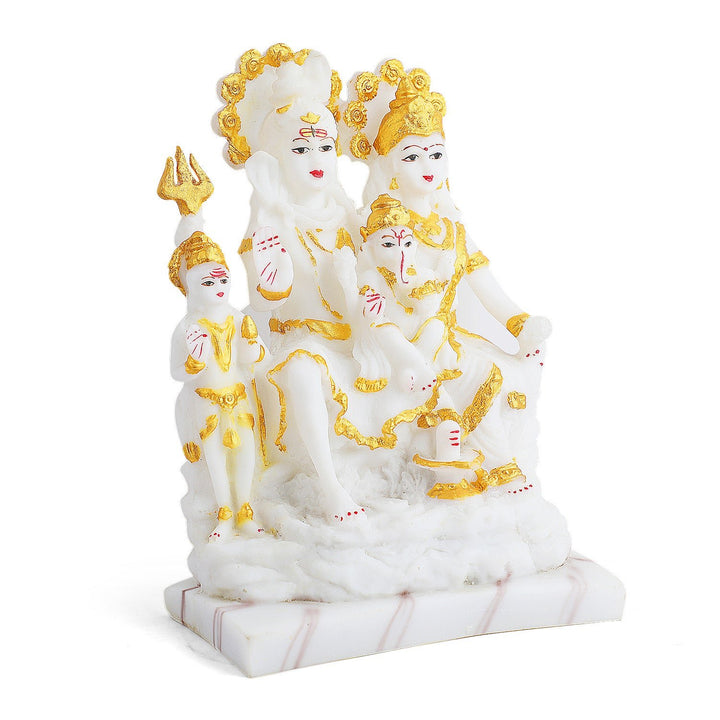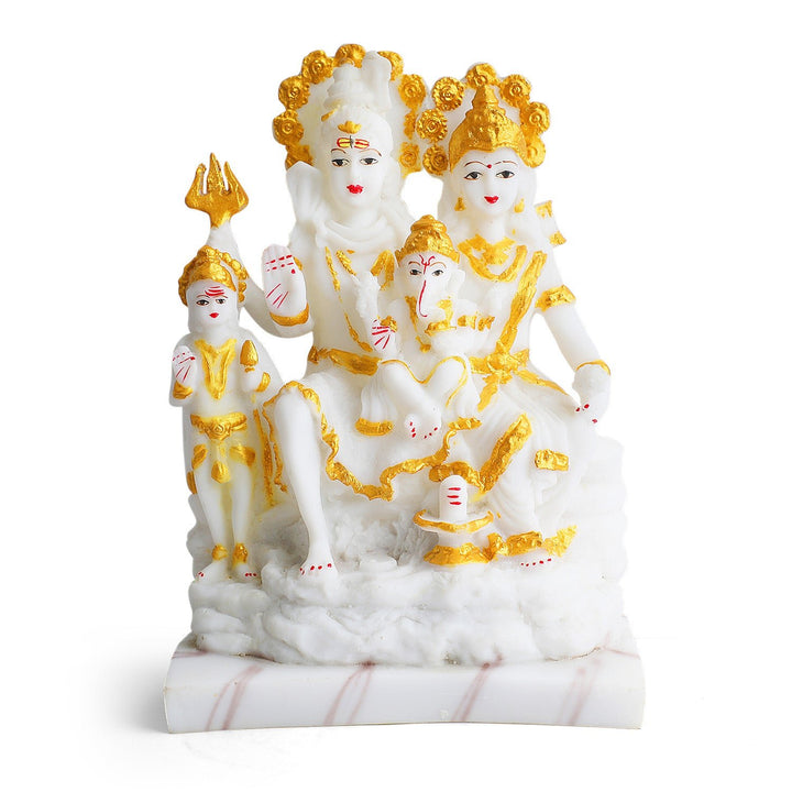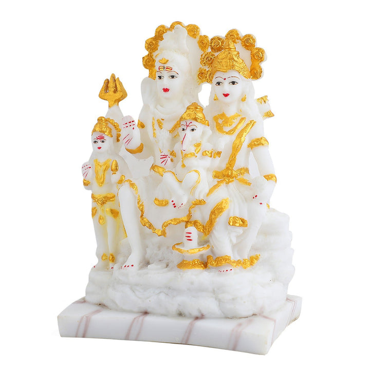 About Product: The Resin Shiv Pariwar sculpture is a magnificent depiction of the divine family, capturing the celestial harmony and unity of Lord Shiva, Goddess Parvati, Lord Ganesha, and Lord Kartikeya. Crafted with exquisite detail, this sacred ensemble radiates a timeless beauty in durable resin.