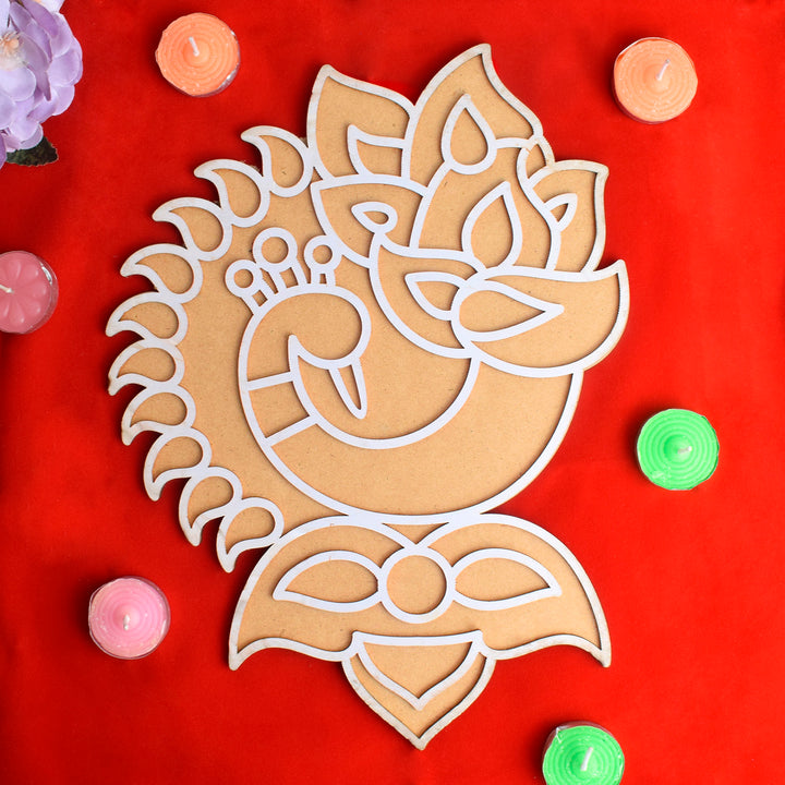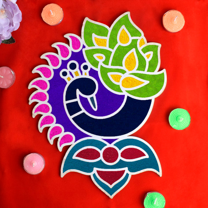 Package Contents : 1 PCS Reusable MDF Rangoli Mat with Wooden Base Peacock Design