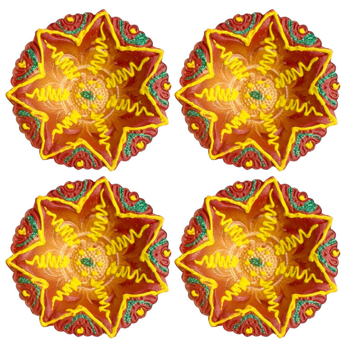 Glow of Tradition Handcrafted Clay Diyas Set of 4