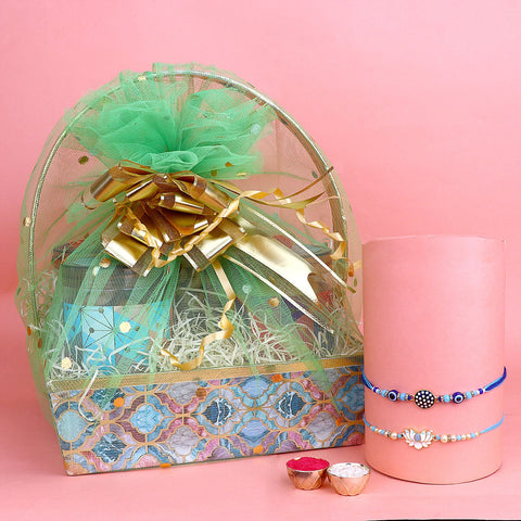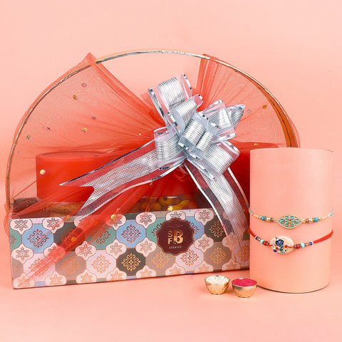 To add sweetness to your celebrations, opt for Rakhi with sweets. These delightful combos not only symbolize the love between siblings but also satisfy the taste buds. Explore the diverse range of Rakhi gift boxes that come with delectable assortments of traditional Indian sweets, chocolates, and dry fruits, making them perfect for gifting.