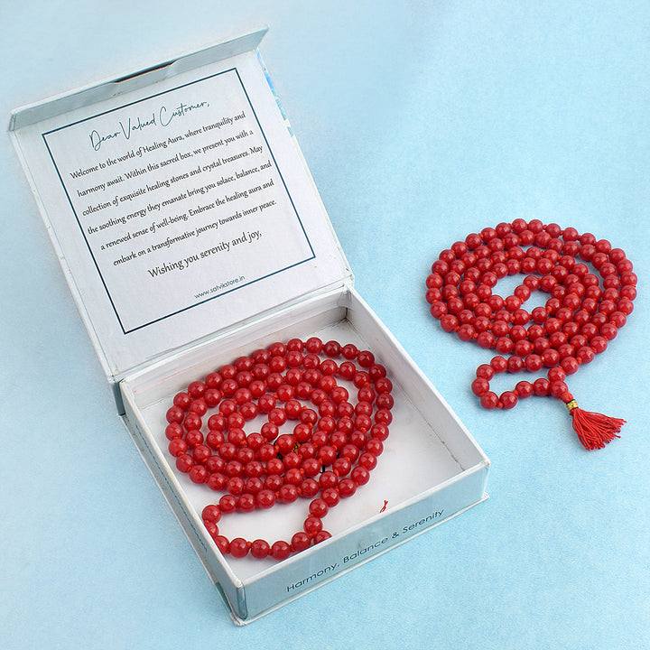 Hakik Jap Mala (Red Coral) | Red Coral Jap Mala for Strength & Protection | Crystal Mala for Confidence & Vitality | Meditation Beads for Root & Sacral Chakra | Healing Mala for Passion & Energy | Red Coral Hakik Mala for Courage & Stability |