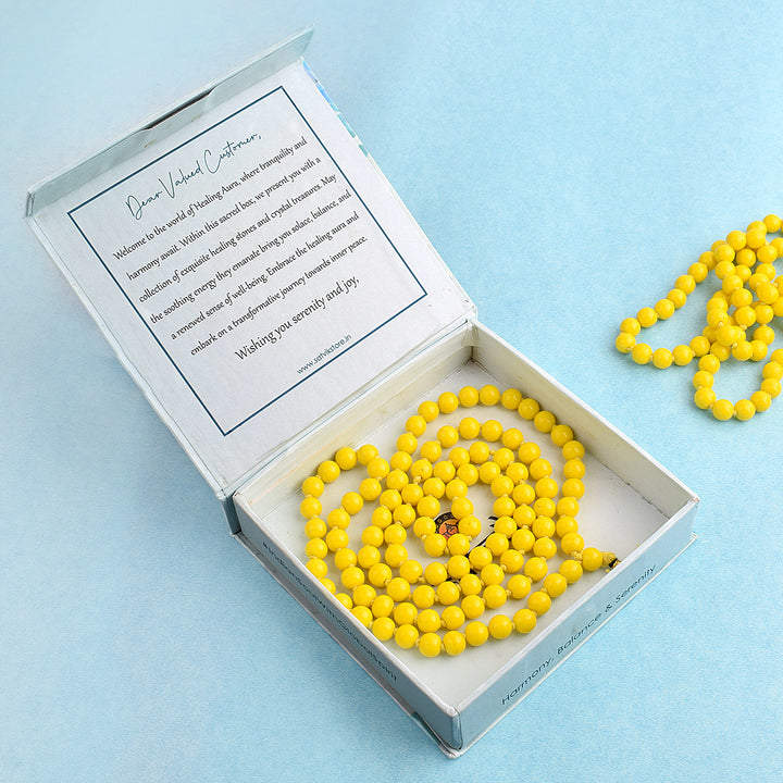 About Product: Hakik Jap Mala (Yellow) – A Mala for Confidence, Prosperity & Energy