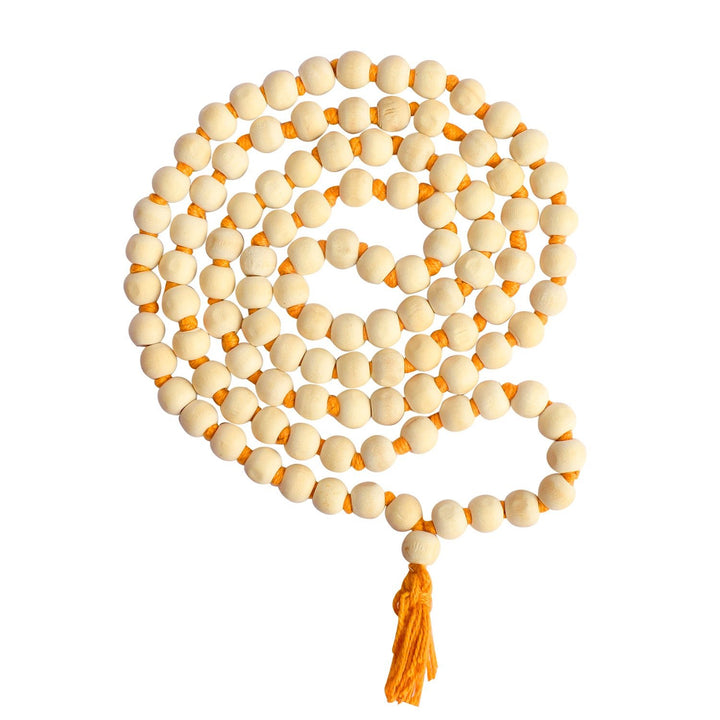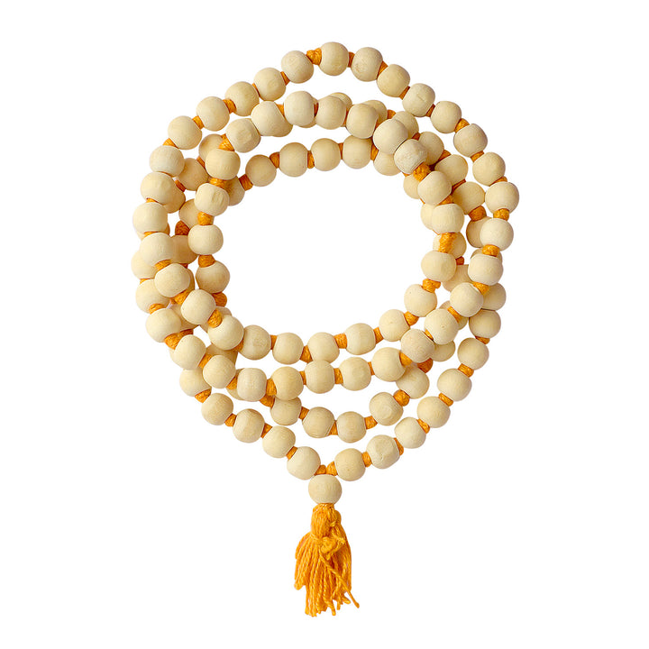 Item Name: Handcrafted Wodden White Jap Mala - 9mm
