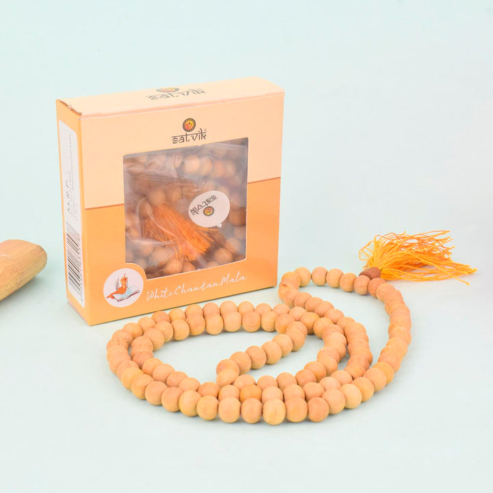 Buy Now - Regular White Sandalwood/Chandan Jap Mala | Satvikworld.com