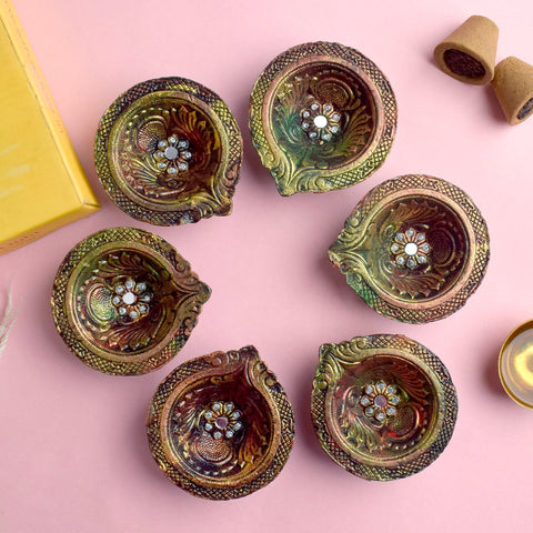 Our carefully curated assortment includes a variety of traditional and contemporary Diwali essentials that will elevate your celebrations. From the timeless Clay Diyas to the ornate Brass Diyas, our collection showcases the craftsmanship and artistry that symbolize the festival's essence. Illuminate your space with our Decorative and Metal Diyas, designed to add radiance to every corner.