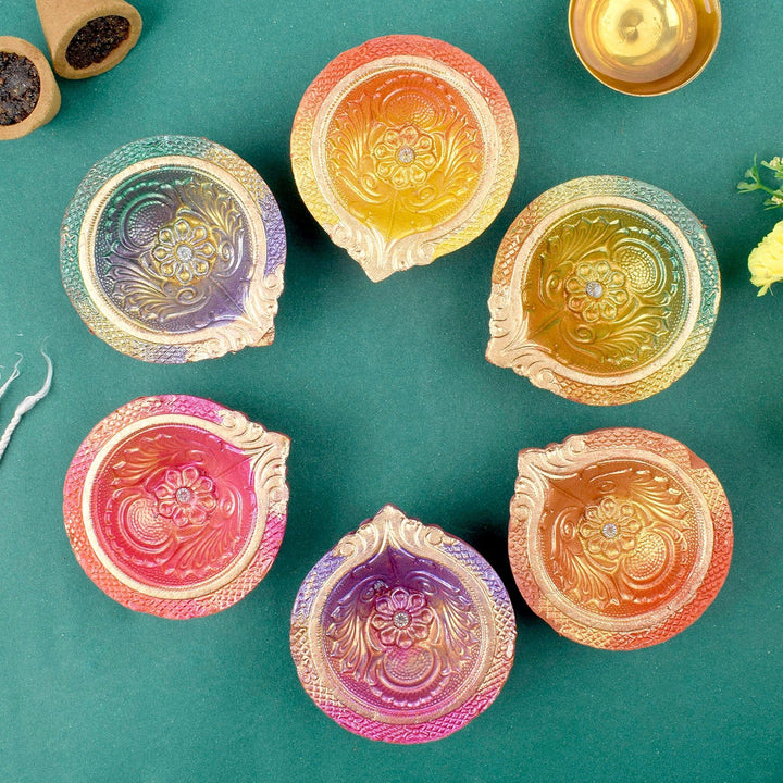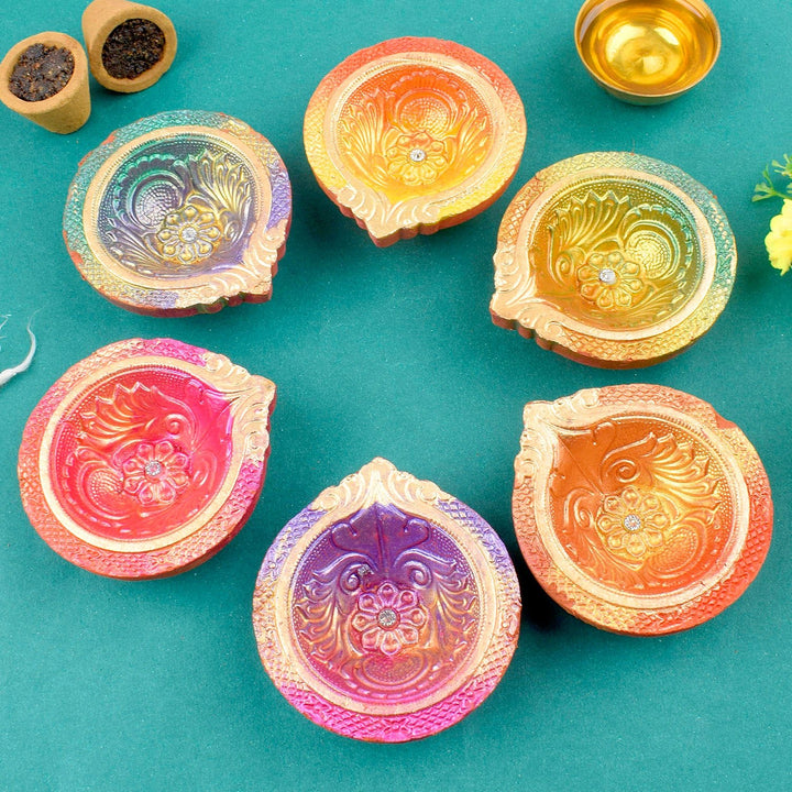 Sacred Glow Authentic Clay Diyas for Diwali Set of 6