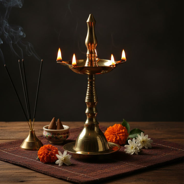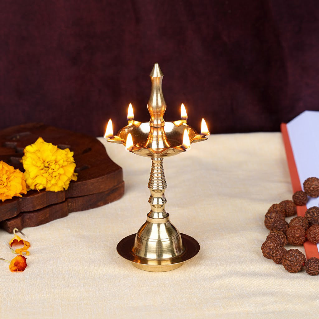 Buy 6 Inch Pure Brass Kerala Inauguration Diya Deepam | Satvikworld.com