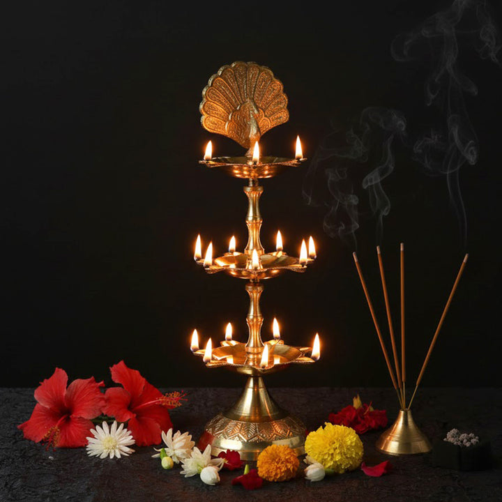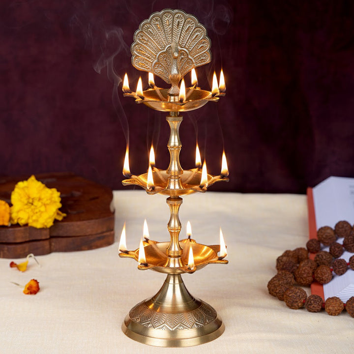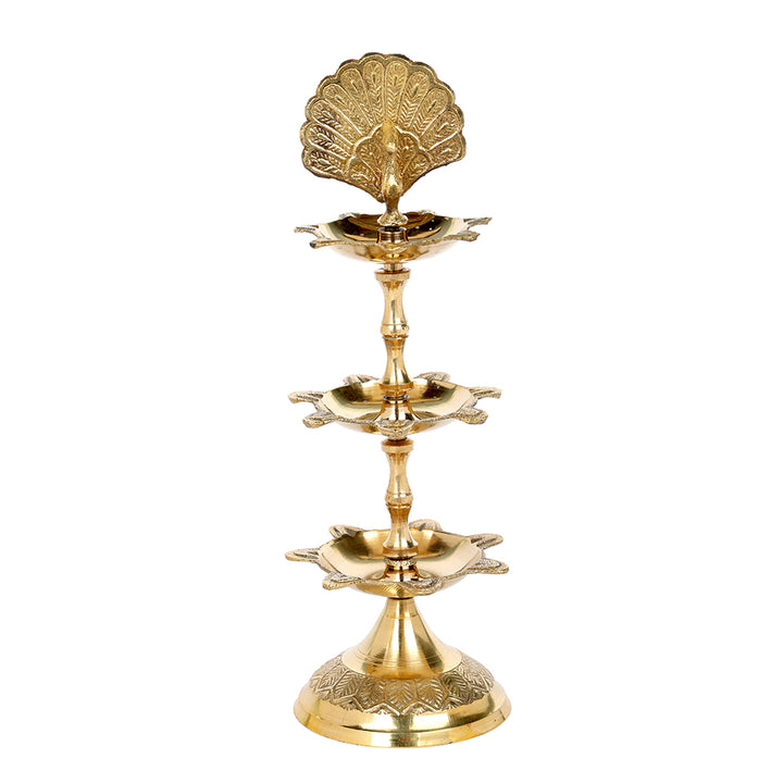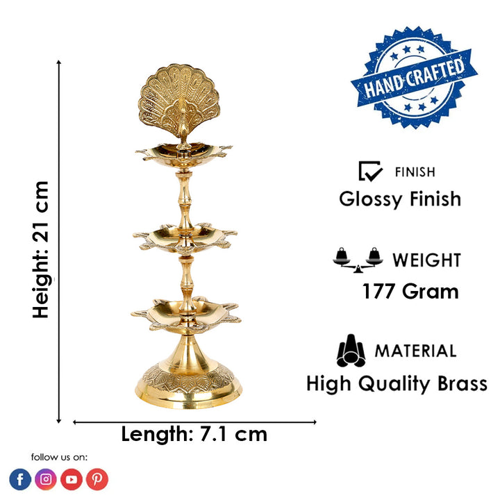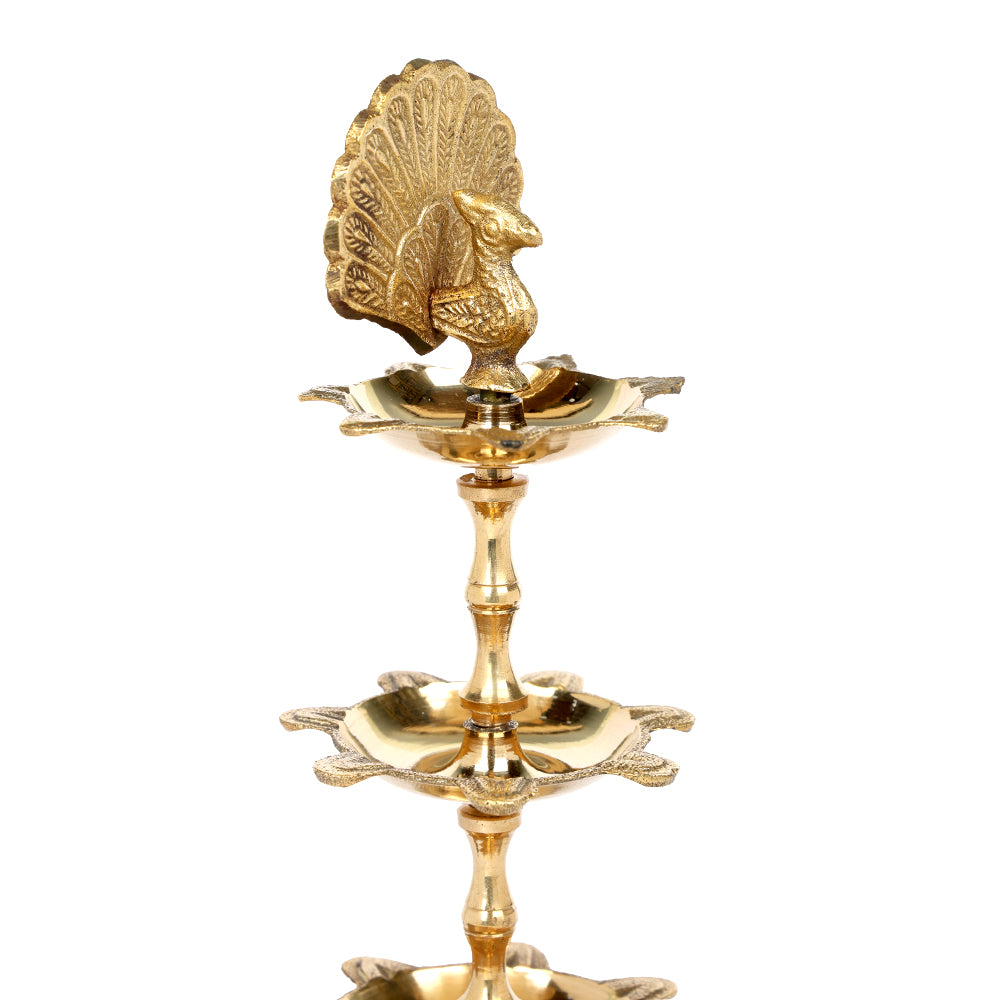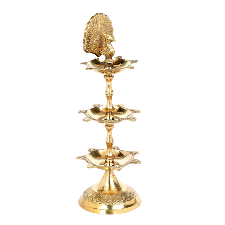 • Item name: 8.3 Inch Brass Flying Peacock 3 Step Kerala Samai diya