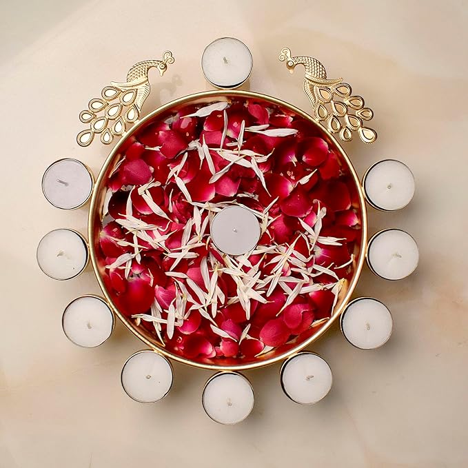 Buy Metal Peacock Flower Urli with Tea Light | Satvikworld.com