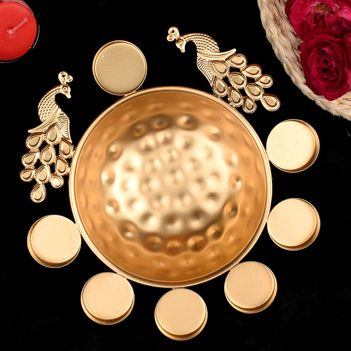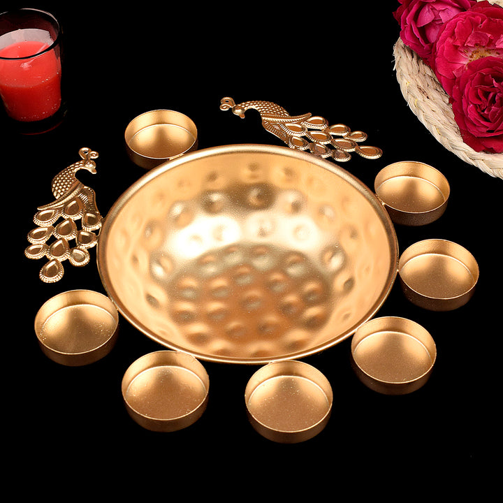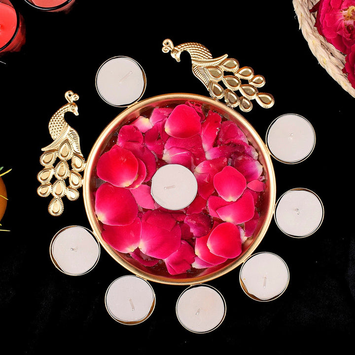 Decorative Metal Peacock Flower Urli with Tea Light