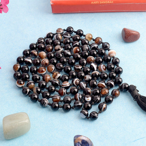 🖤 Black Hakik Mala (Black Agate) – Grounding, protection, and inner strength