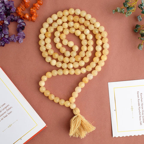 🔆 Golden Quartz Mala – Elevates personal power and joy