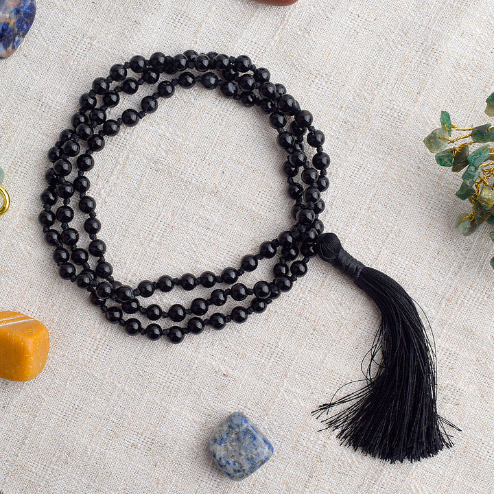 • Item Name: 108 Beads Black Onyx Crystal Jaap Mala for Protection & Focus