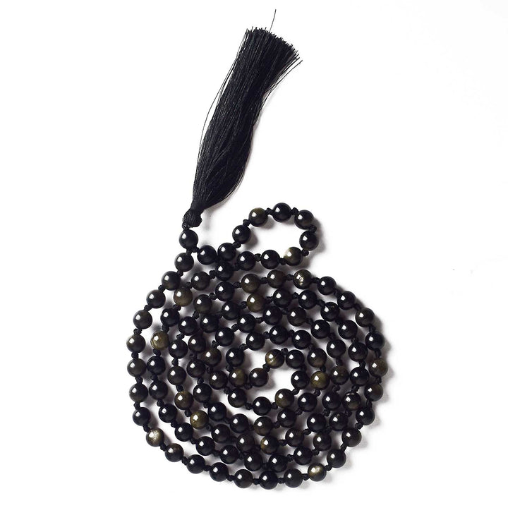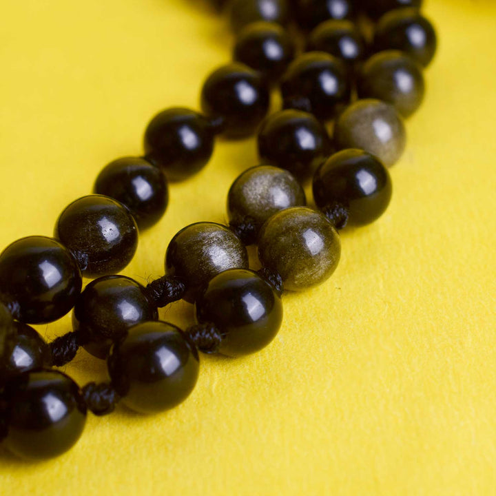 Golden Obsidian Mala | 108 Beads Mala | Protection Mala | Grounding Stone | Energy Shield | Healing Mala | Spiritual Meditation Beads