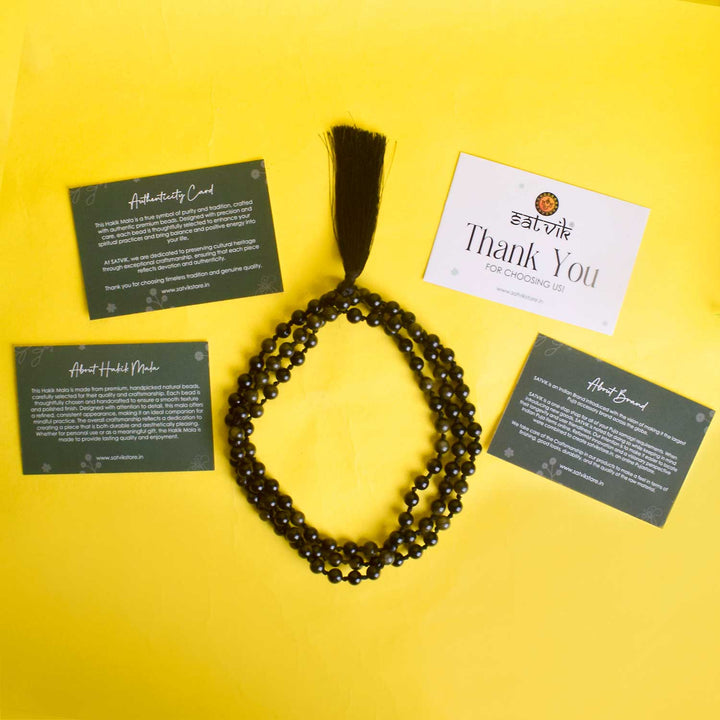 • Item Name: Golden Obsidian Hakik Mala (108 Beads) – A Shield of Protection & Strength