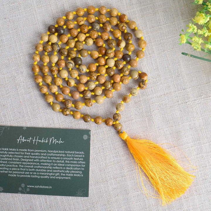 Buy Online Picture Jasper Hakik Mala (108 Beads) | Satvikworld.com