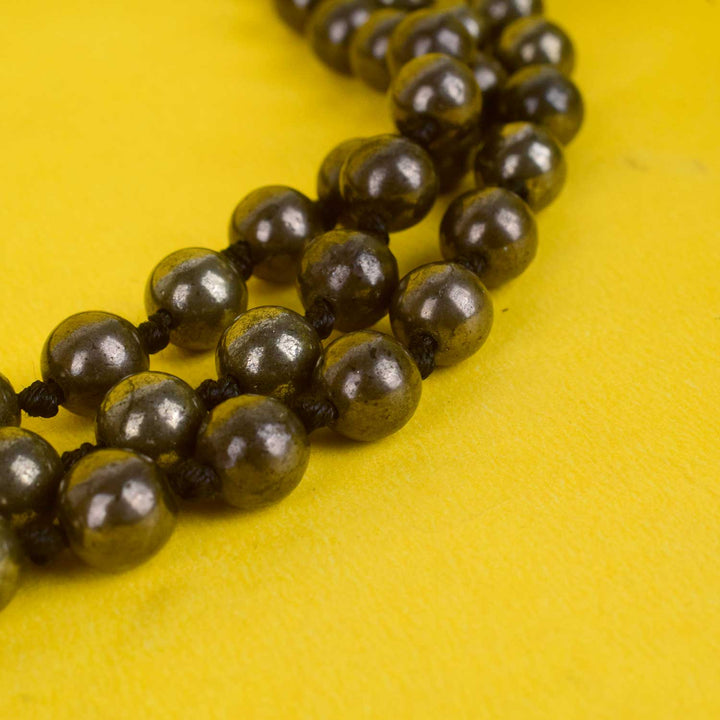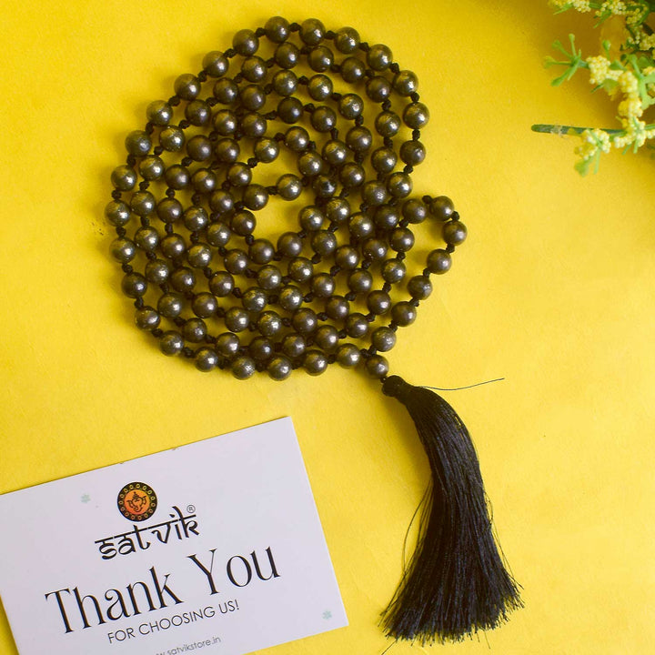 Pyrite Mala | Pyrite Hakik Mala 108 Beads |  Wealth-Attracting Mala | Protection and Success Stone | Pyrite Meditation Mala |  Spiritual Growth Mala