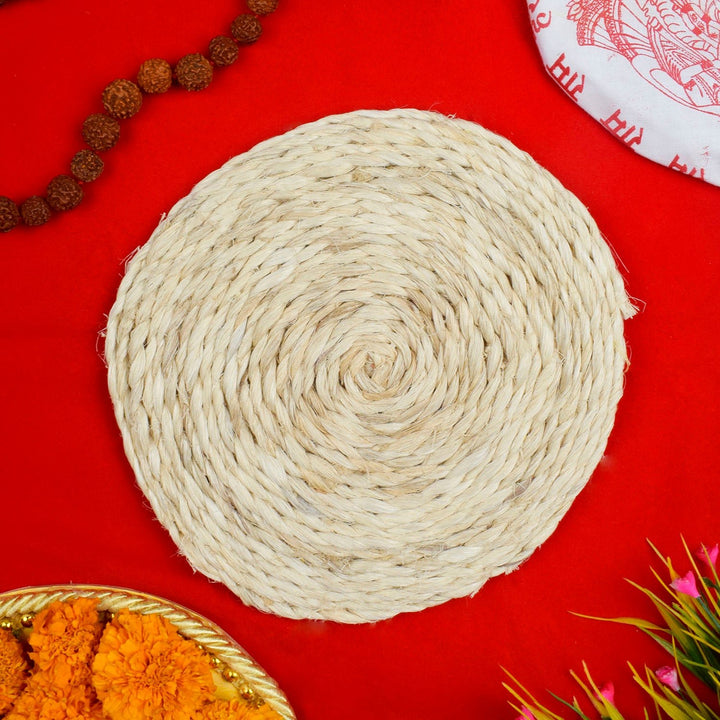 Auspicious Banana Stem Fiber Asan for Sacred Statues in the Mandir (8 Inch)
