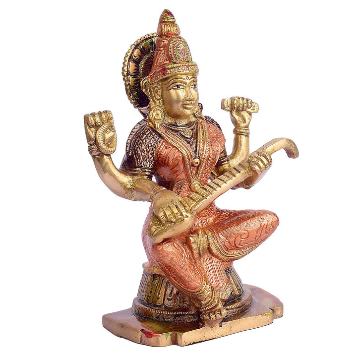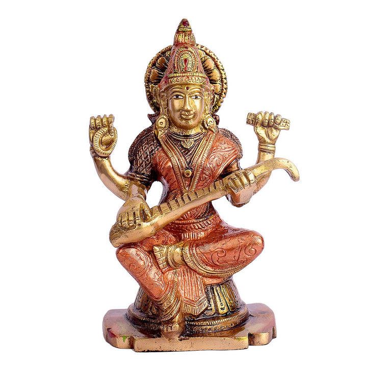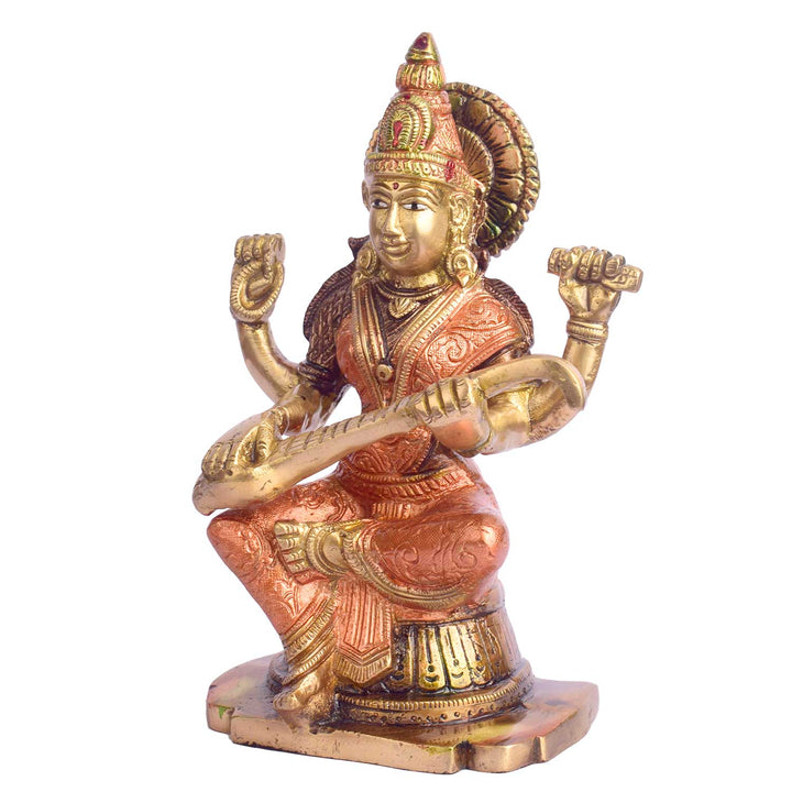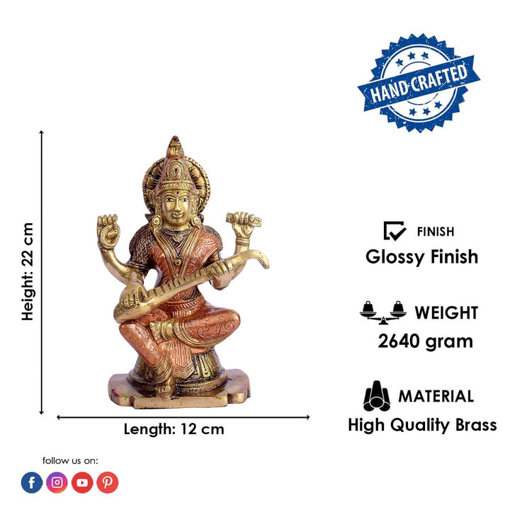 • Material: The Saraswati Mata Murti is made from High-Quality Brass Material