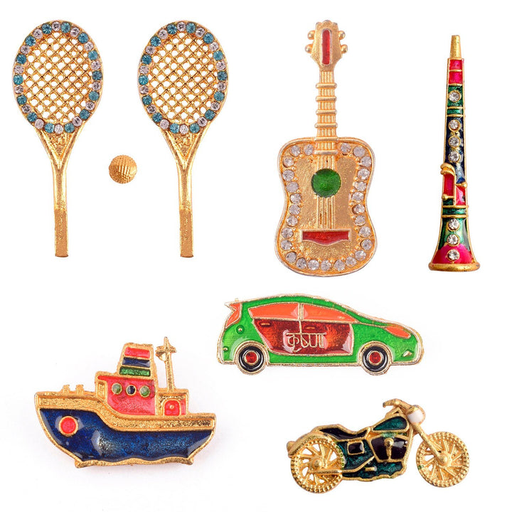 Indulge your Laddu Gopal with our set of assorted toys, available in sets of 6 pieces. Each toy is carefully crafted and designed to provide endless Look. Elevate your Laddu Gopal's with these exquisite and exclusive toys. Perfect for the most discerning devotees.