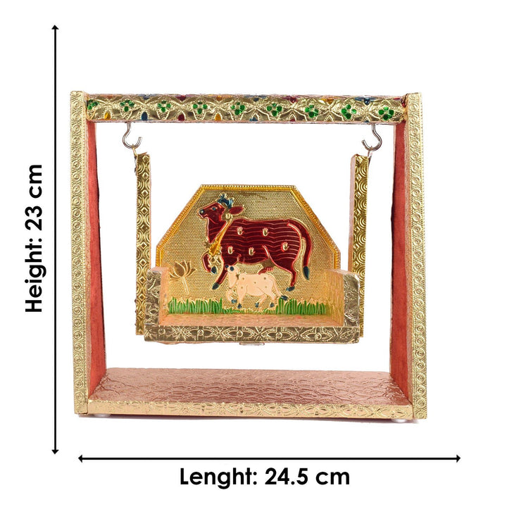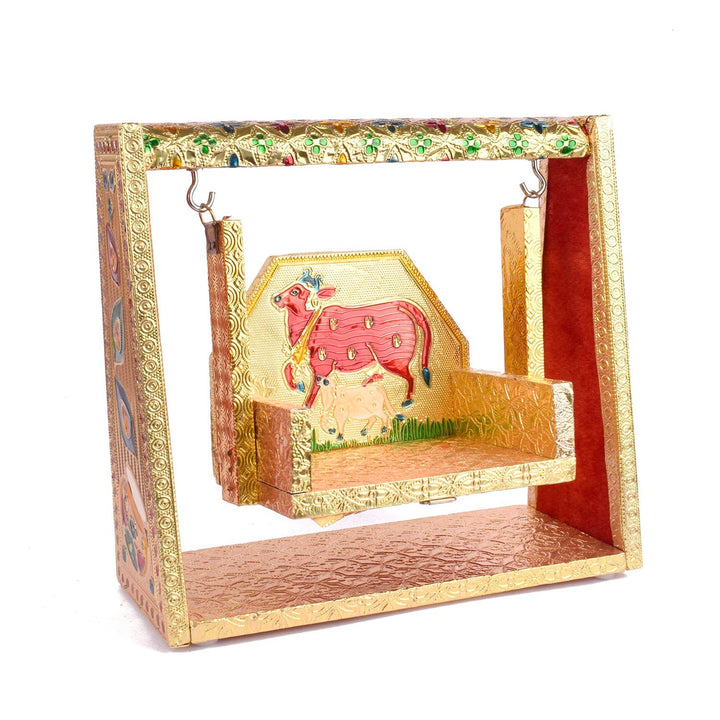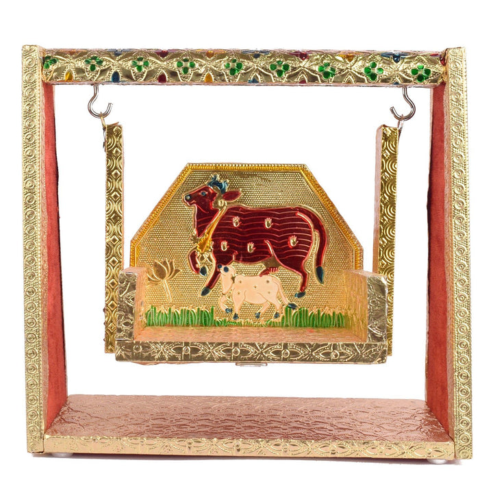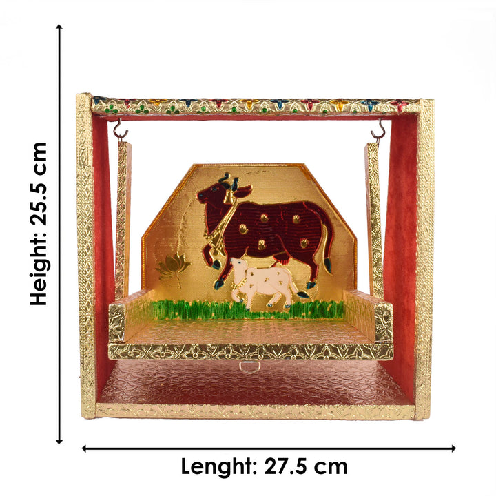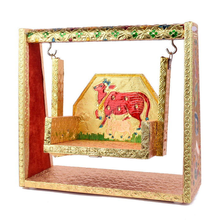 Perfect for placing Laddu Gopal Ji or Ganpati during festive occasions or daily worship, this jhula is handcrafted by skilled artisans from West Bengal and Uttar Pradesh. Its rich colors and artistic finesse make it a striking devotional accessory.