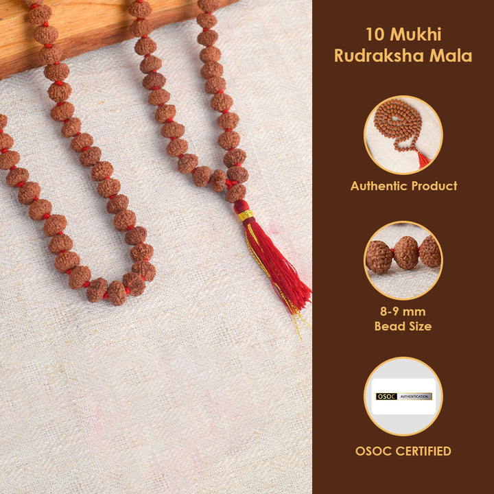 Buy 10 Mukhi Rudraksha Mala for Divine Protection | Satvikworld.com