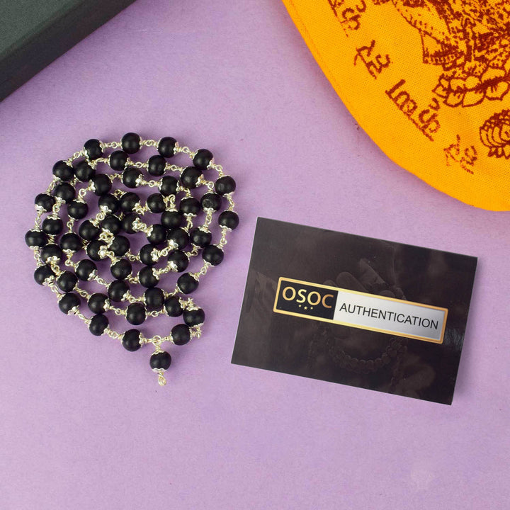 • Material: Mala beads made from tested and certified Ebony wood (Karungali) by the Central Wood Testing Laboratory, Rubber Board, Govt. of India.