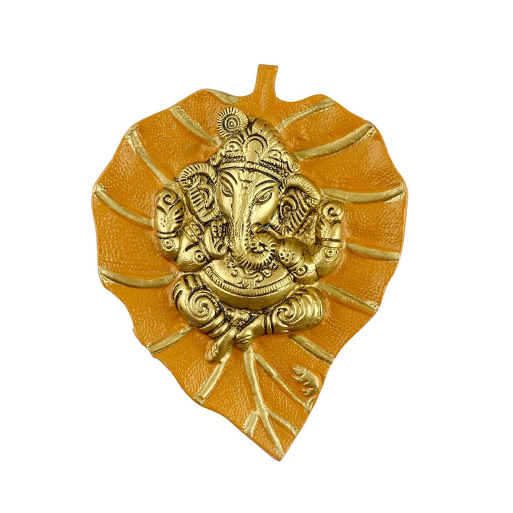 Buy Lord Ganesh on Leaf Patta Wall Hanging Yellow | Satvikworld.com