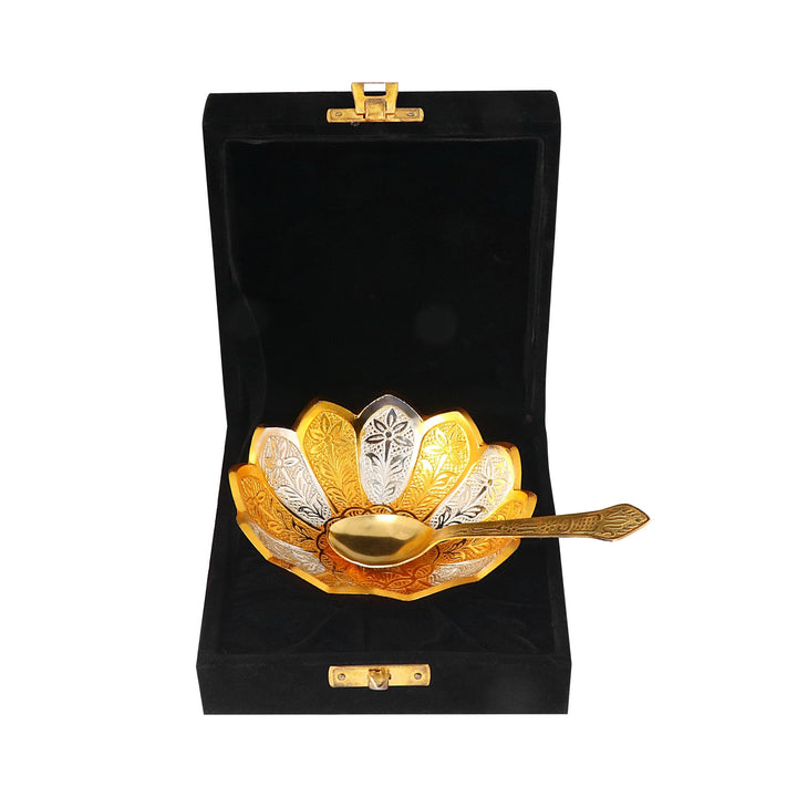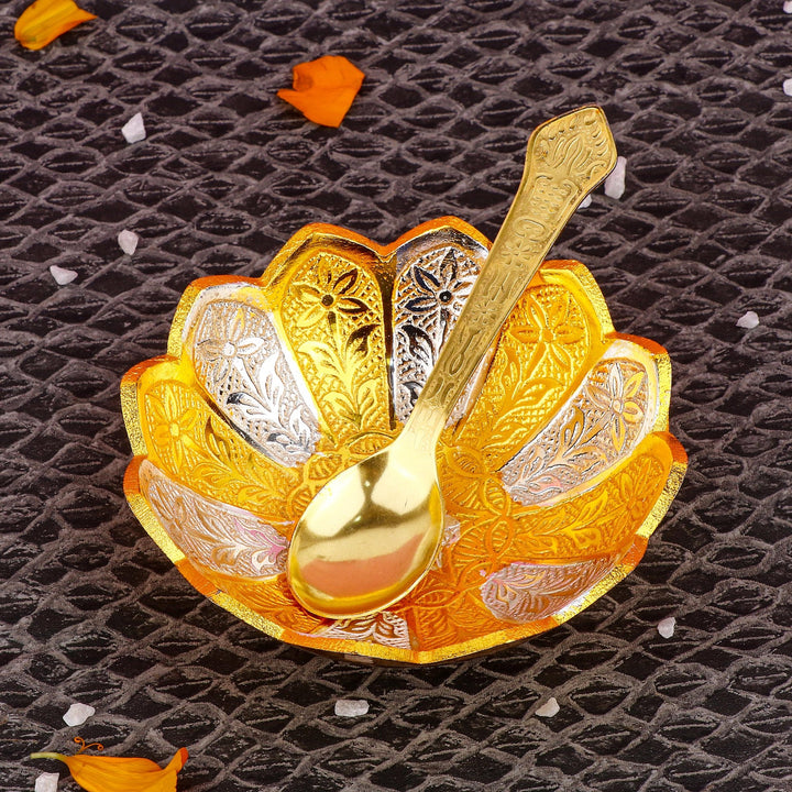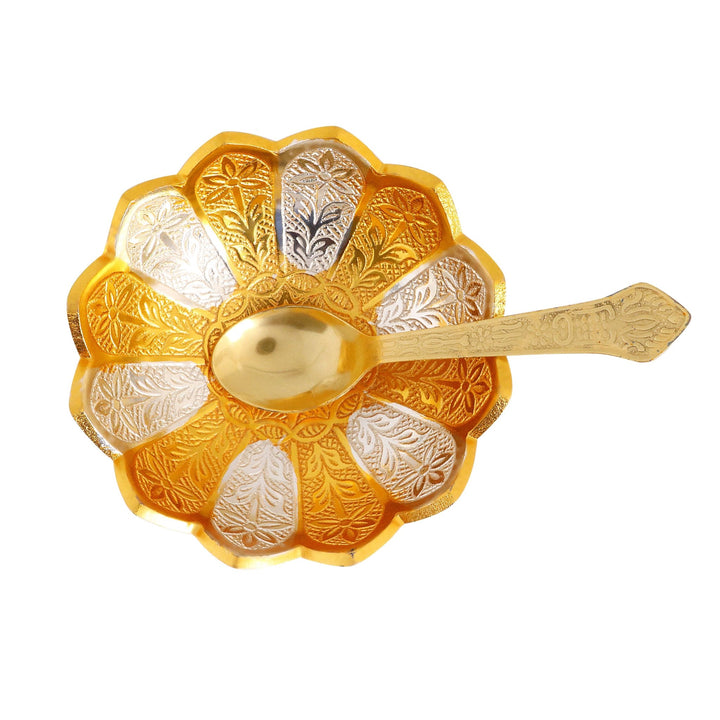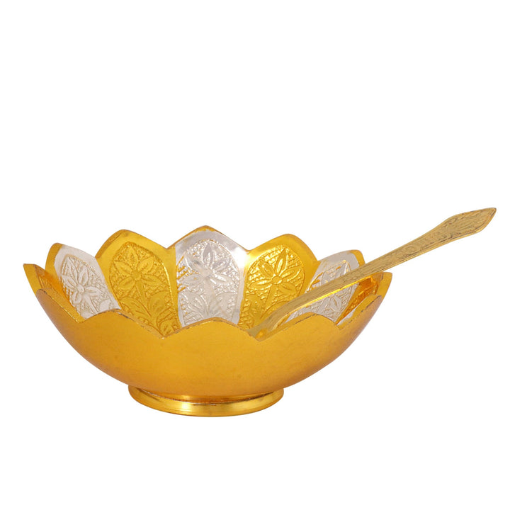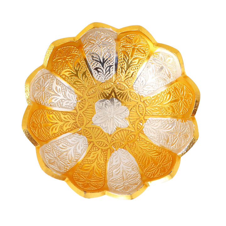 Buy Decorative Embossed Silver Golden Flower Bowl | Satvikworld.com