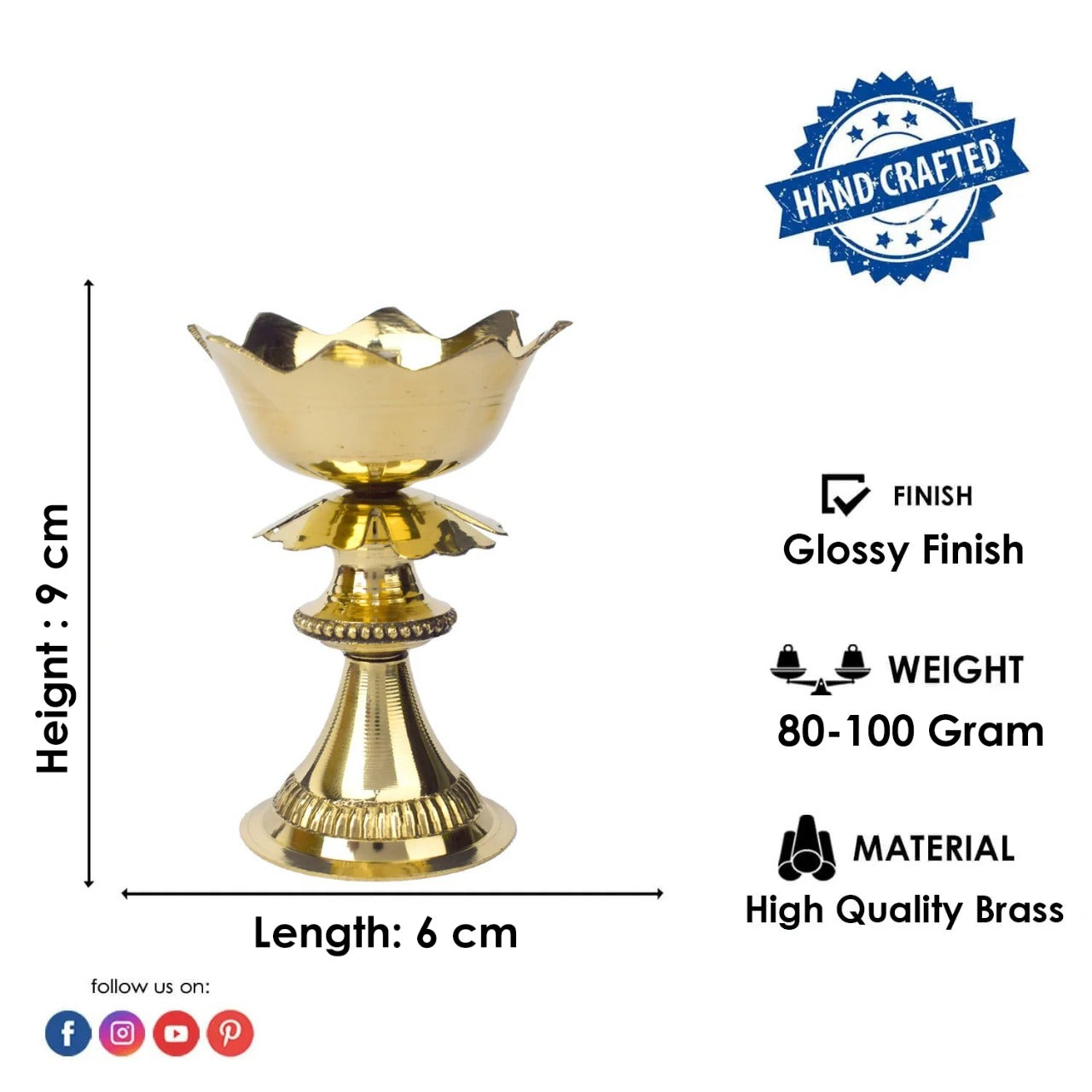 About Product : Illuminate your sacred space with this beautifully handcrafted 3.5 Inch Kamal Stand Brass Diya. Featuring a stunning lotus (kamal) base design, this diya symbolizes purity, enlightenment, and spiritual awakening—perfect for uplifting any devotional atmosphere.Crafted from high-quality solid brass, this diya is ideal for placing on your pooja altar, home temple, or as a decorative centerpiece during spiritual ceremonies. Its compact size and graceful form make it a radiant addition to daily rituals, Diwali, Navratri, or other auspicious occasions.Perfect as a spiritual gift or devotional décor piece, this diya blends traditional Indian craftsmanship and sacred symbolism, bringing peace and beauty into your home.