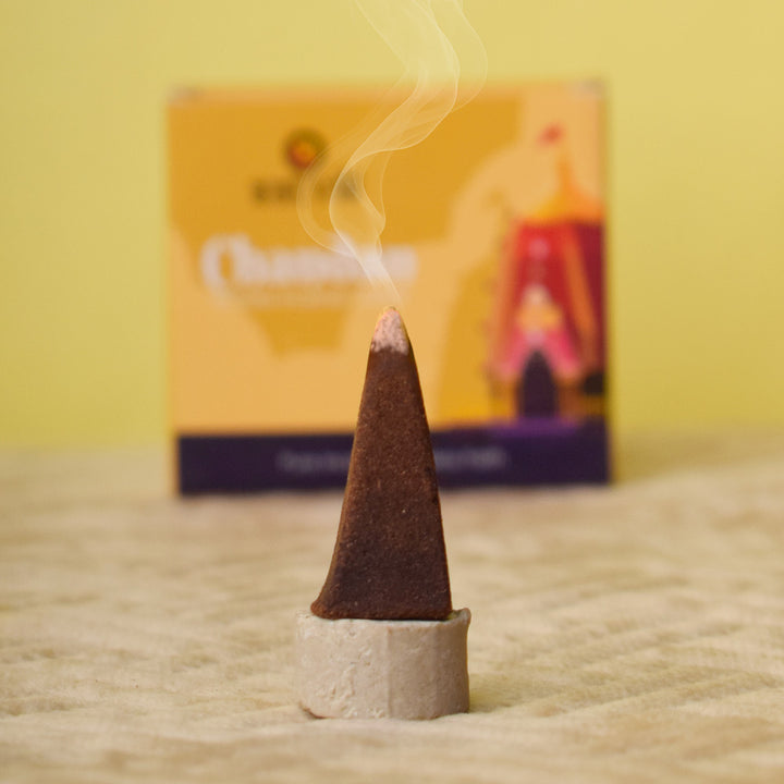 Chandan incense cones | Pure sandalwood dhoop cones | Natural masala incense cones | Handcrafted sandalwood incense | Chandan dhoop cones for pooja | Spiritual incense cones | Sandalwood cones for meditation | Herbal incense cones | Premium Chandan incense cones | Devotional sandalwood dhoop