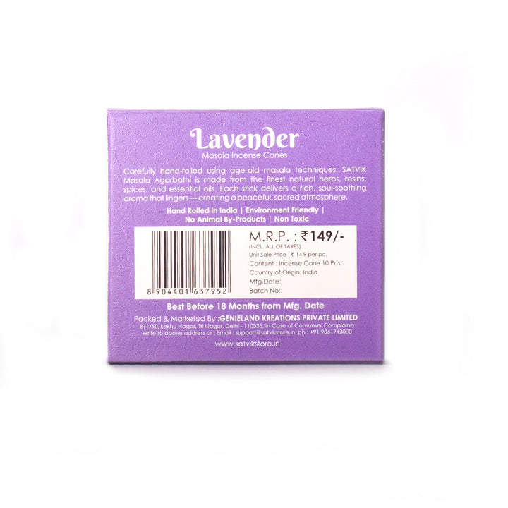 Buy Lavender Pure Masala Incense Cones Online | Satvikworld.com