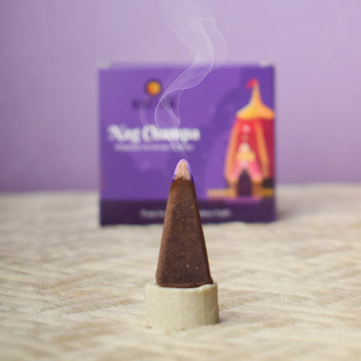 Part of the sacred Moksha Series, which includes variants like Lavender, Chandan, Aradhya, Praana, Amritam, and Anantha, the Nag Champa incense cones hold a timeless place in Indian tradition as a fragrance of devotion and divine purity.